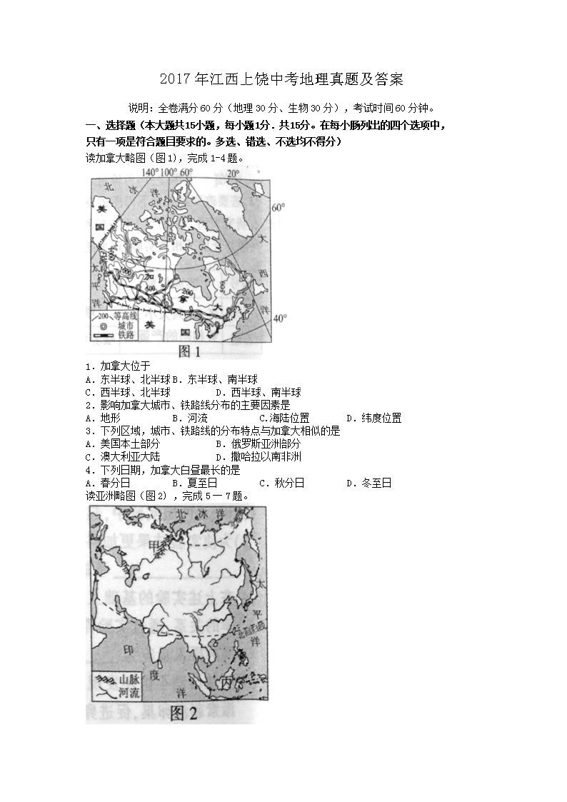 【文档名称】 2017年江西上饶中考地理真题及答案(Word版).doc