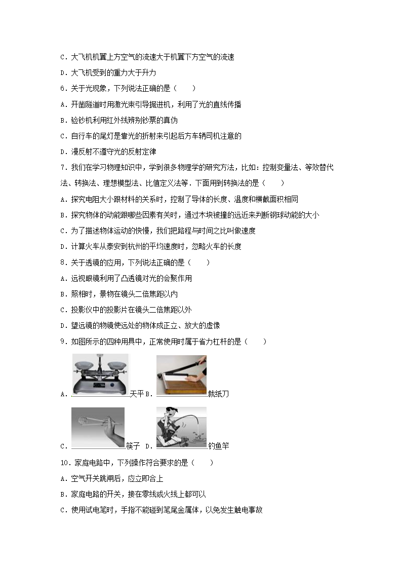 【文档名称】 2017山东省泰安市中考物理真题及答案(Word版).doc