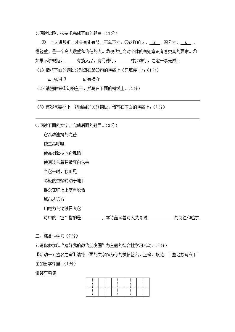【文档预览】 无忧考网整理发布2017年陕西省铜川中考语文真题及答案(Word版),前五页预览如下: