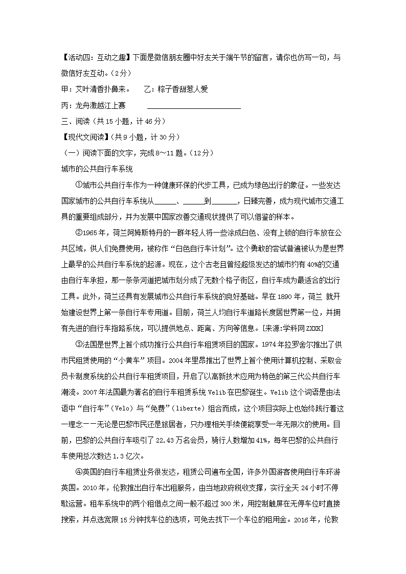 【文档名称】 2017年陕西省渭南中考语文真题及答案(Word版).doc