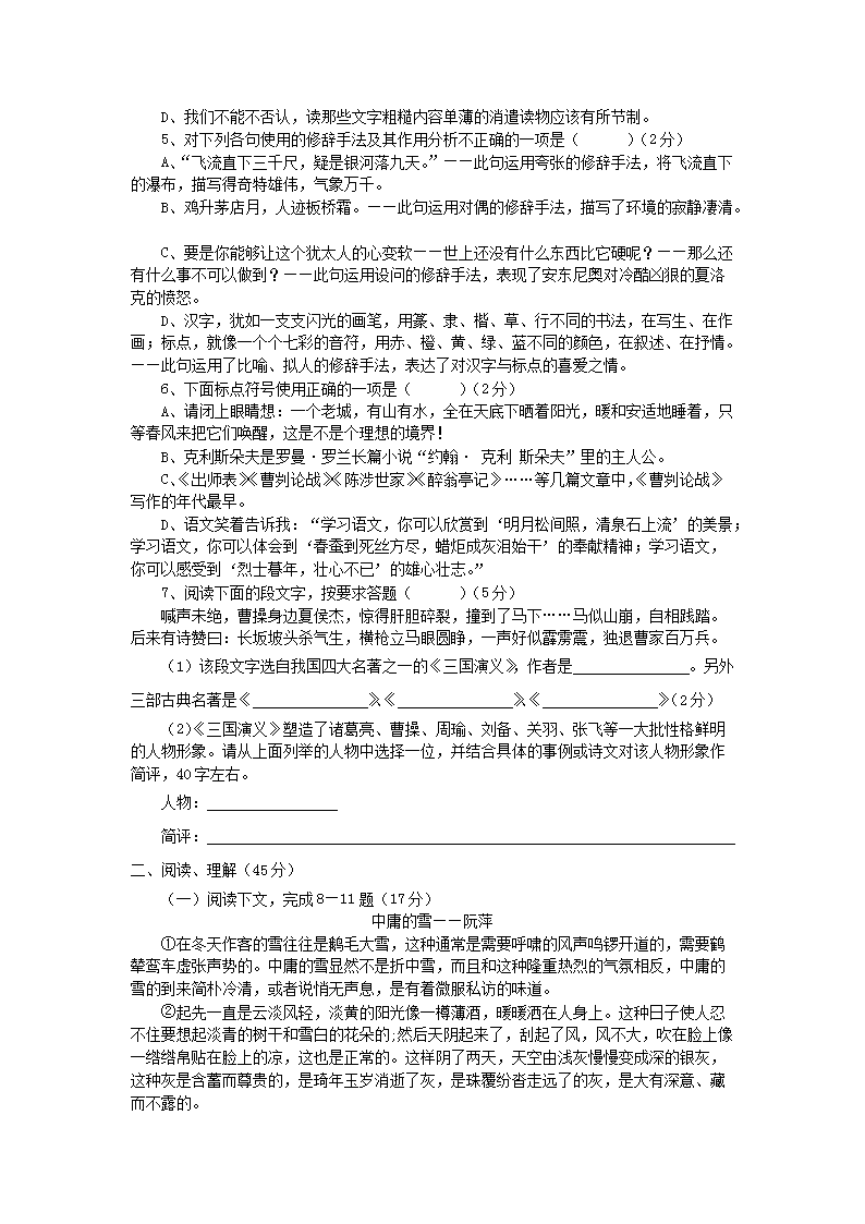 【文档预览】 无忧考网整理发布2014年四川省宜宾市中考语文真题及答案(Word版),前五页预览如下: