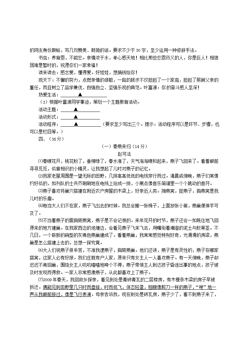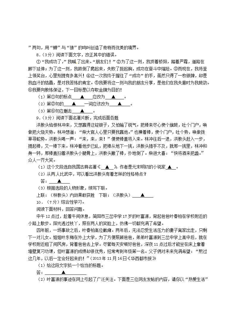【文档名称】 2014年四川省资阳市中考语文真题及答案(Word版).doc