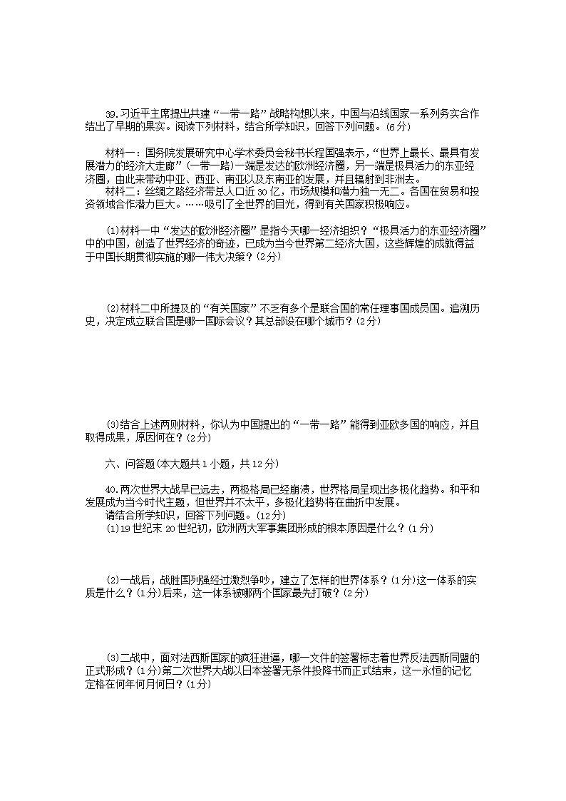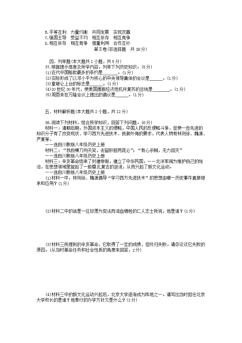 【文档名称】 2015四川省达州市中考历史真题及答案(Word版).doc