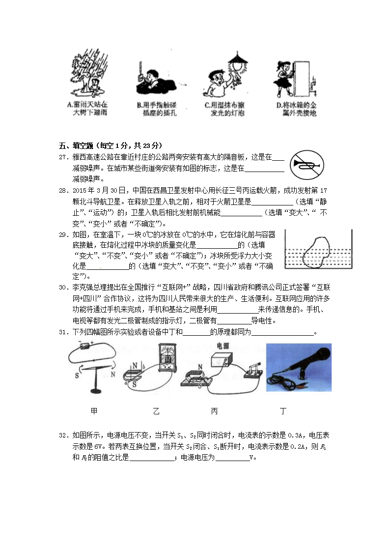 【文档名称】 2015四川省凉山州中考物理真题及答案(Word版).doc