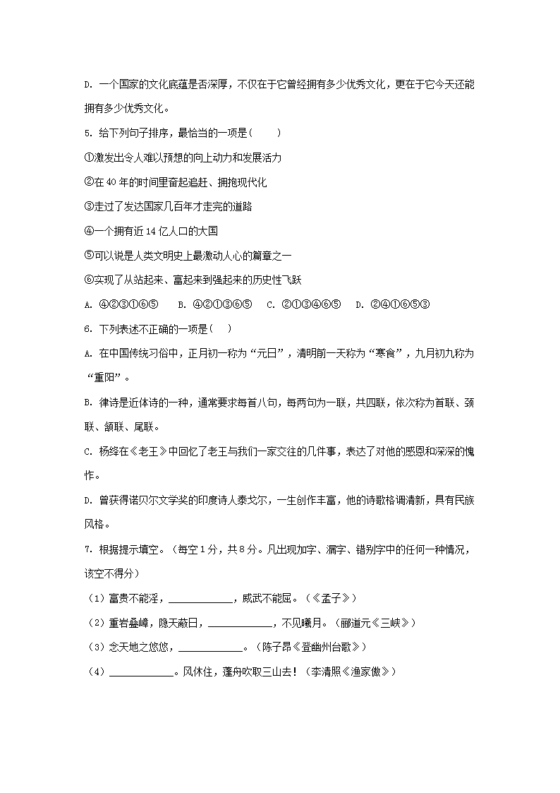 【文档名称】 2019年云南临沧中考语文真题及答案(Word版).doc