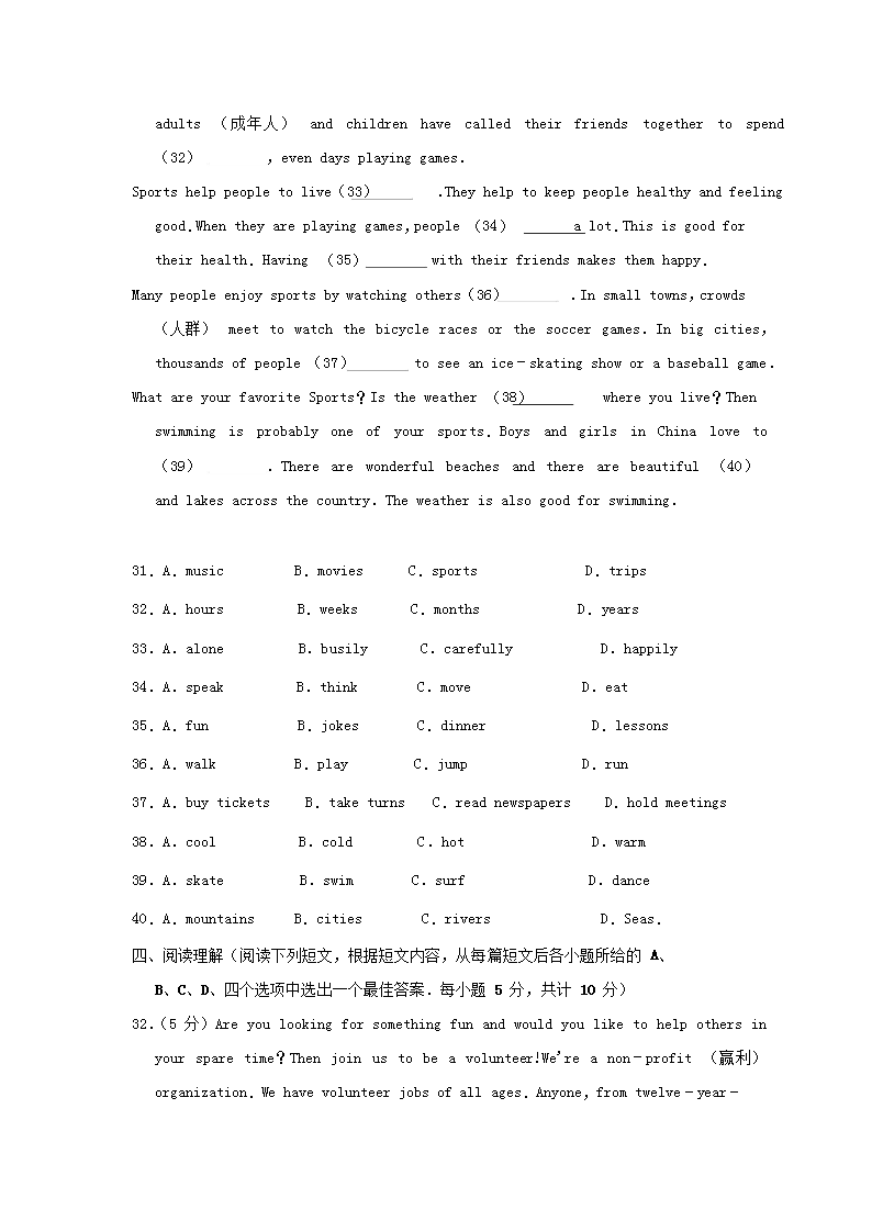 【文档预览】 无忧考网整理发布2010年西藏昌都中考英语真题及答案(Word版),前五页预览如下:
