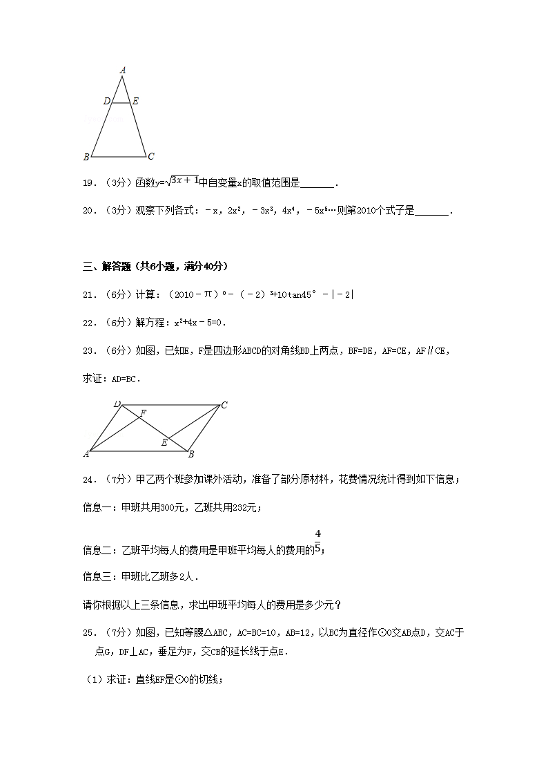 【文档名称】 2010年西藏山南中考数学真题及答案(Word版).doc
