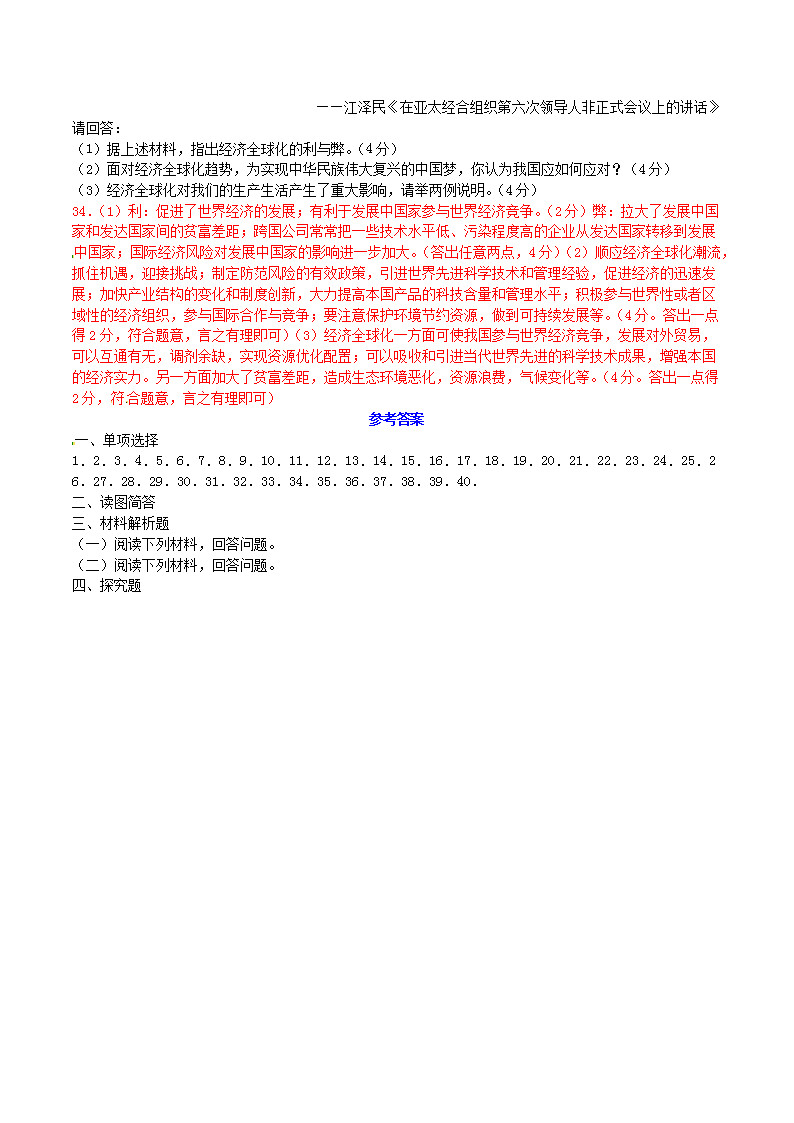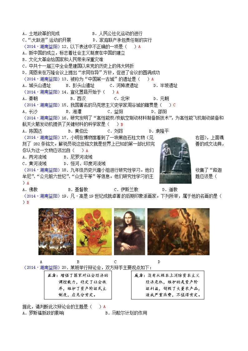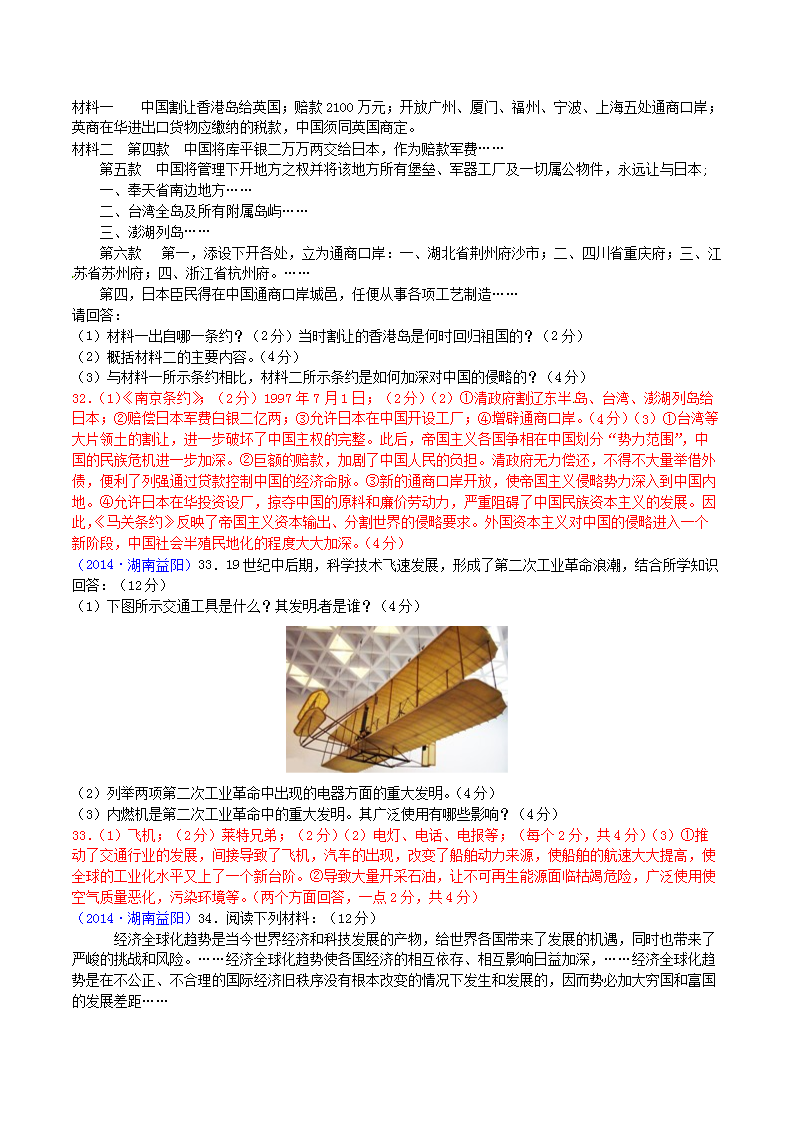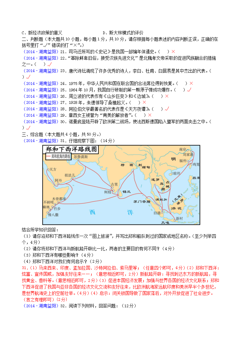 【文档名称】 2014年湖南省益阳市中考历史真题及答案(Word版).doc