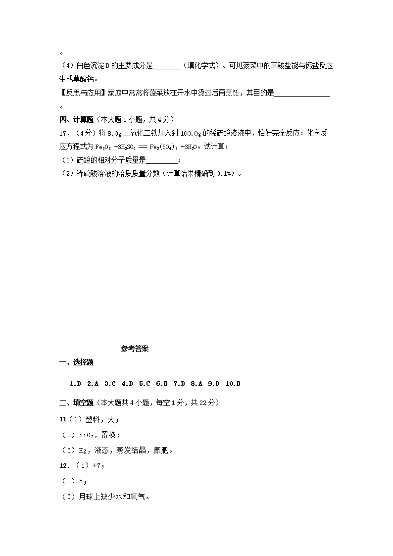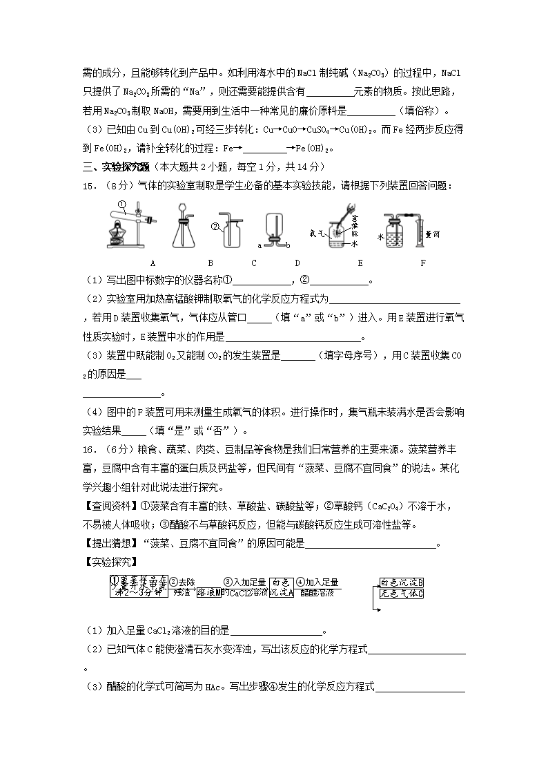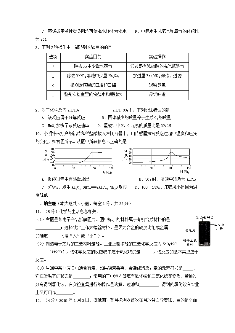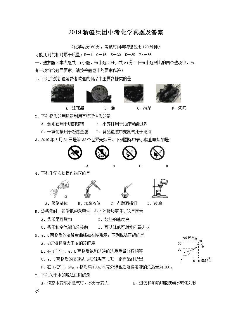 【文档名称】 2019新疆兵团中考化学真题及答案(Word版).doc
