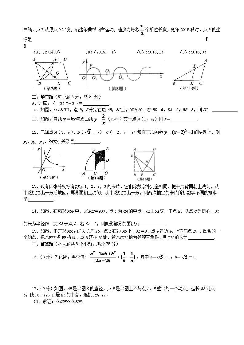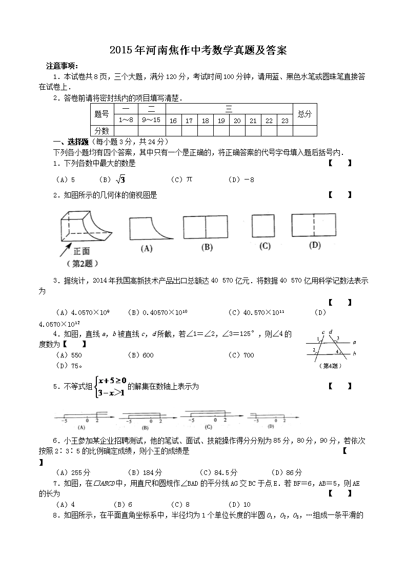 【文档名称】 2015年河南焦作中考数学真题及答案(Word版).doc