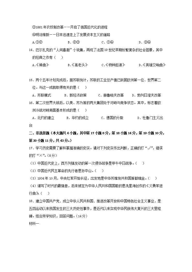 【文档名称】 2019年新疆兵团中考历史真题及答案(Word版).doc