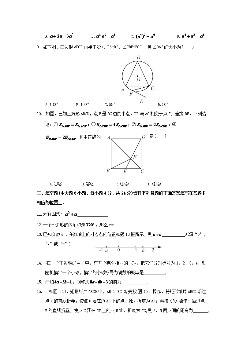 【文档名称】 2017年广东省揭阳市中考数学真题及答案(Word版).doc
