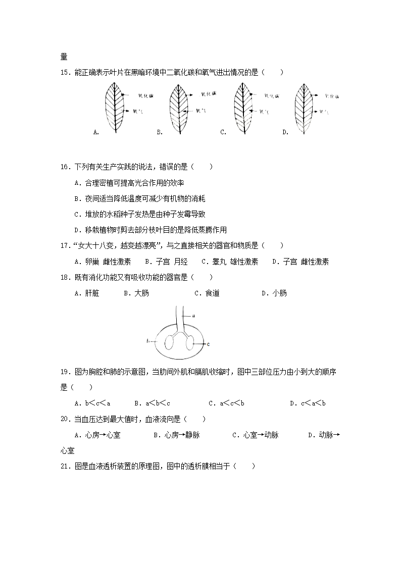 【文档名称】 2016年广东省清远市中考生物真题及答案(Word版).doc