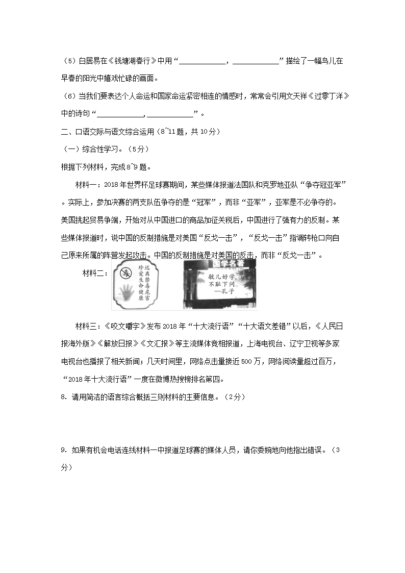 【文档名称】 2019年云南文山中考语文真题及答案(Word版).doc