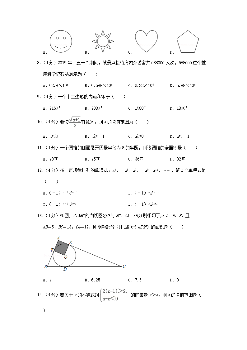 【文档名称】 2019年云南昭通中考数学真题及答案(Word版).doc