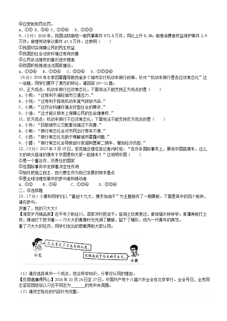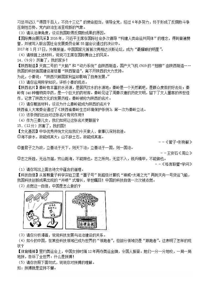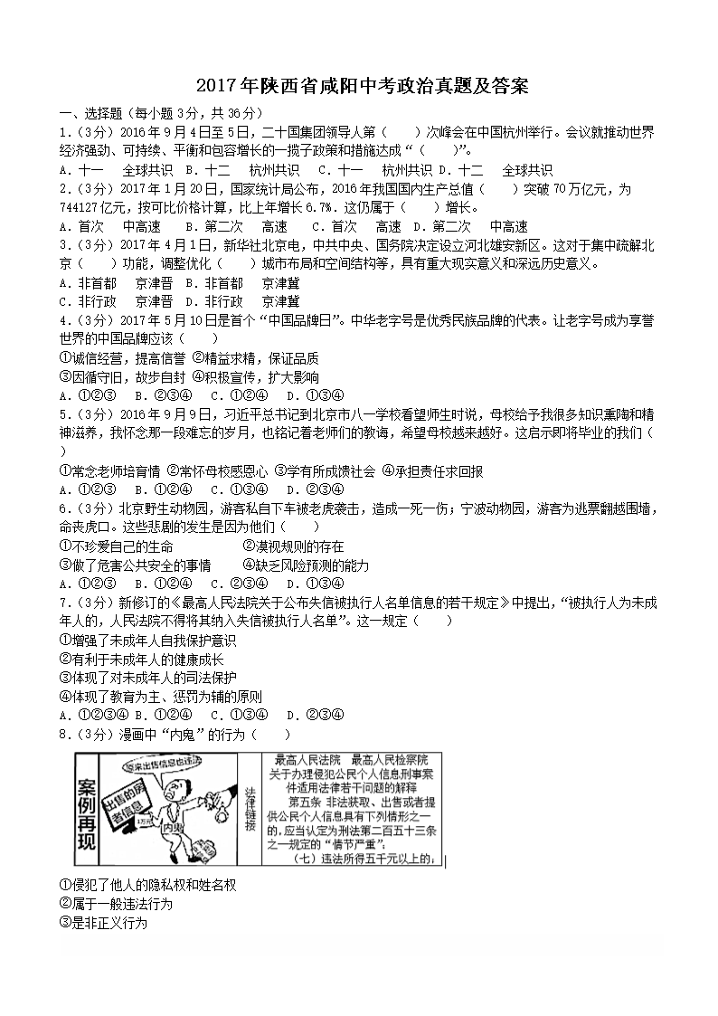 【文档名称】 2017年陕西省咸阳中考政治真题及答案(Word版).doc