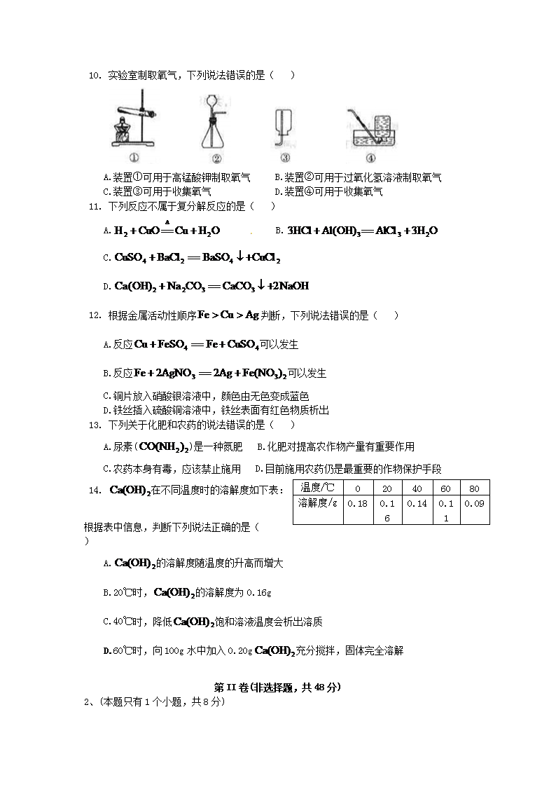 【文档预览】 无忧考网整理发布2014年四川省成都市中考化学真题及答案(Word版),前五页预览如下: