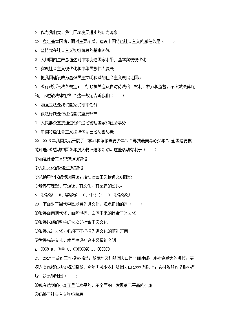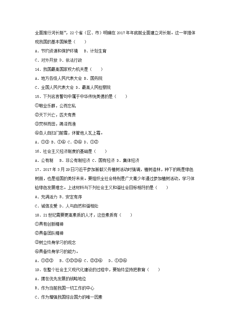 【文档名称】 2017年辽宁本溪中考政治真题及答案(Word版).doc