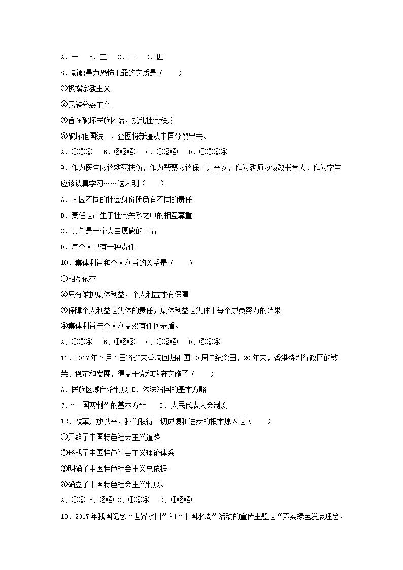 【文档名称】 2017年辽宁抚顺中考政治真题及答案(Word版).doc