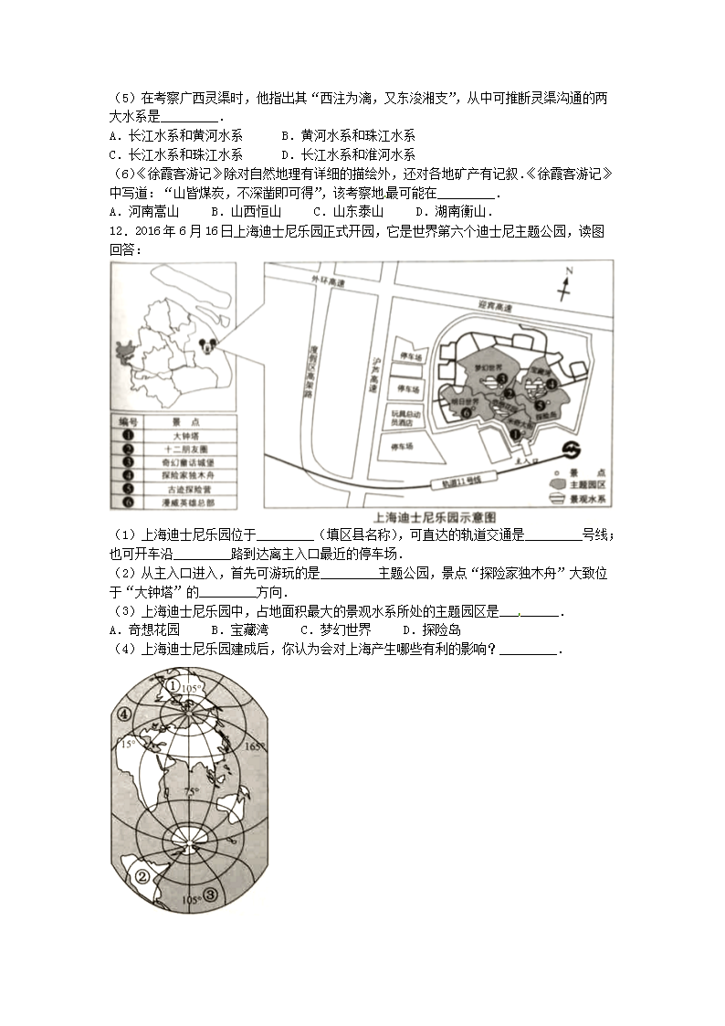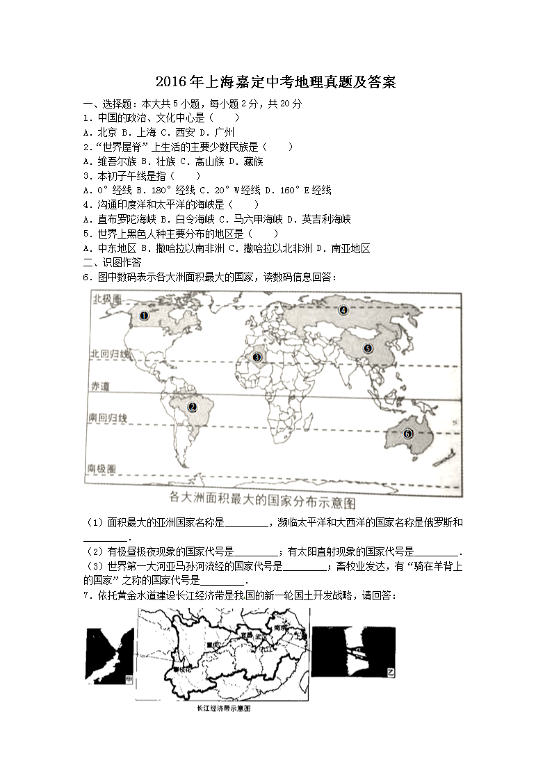 【文档名称】 2016年上海嘉定中考地理真题及答案(Word版).doc