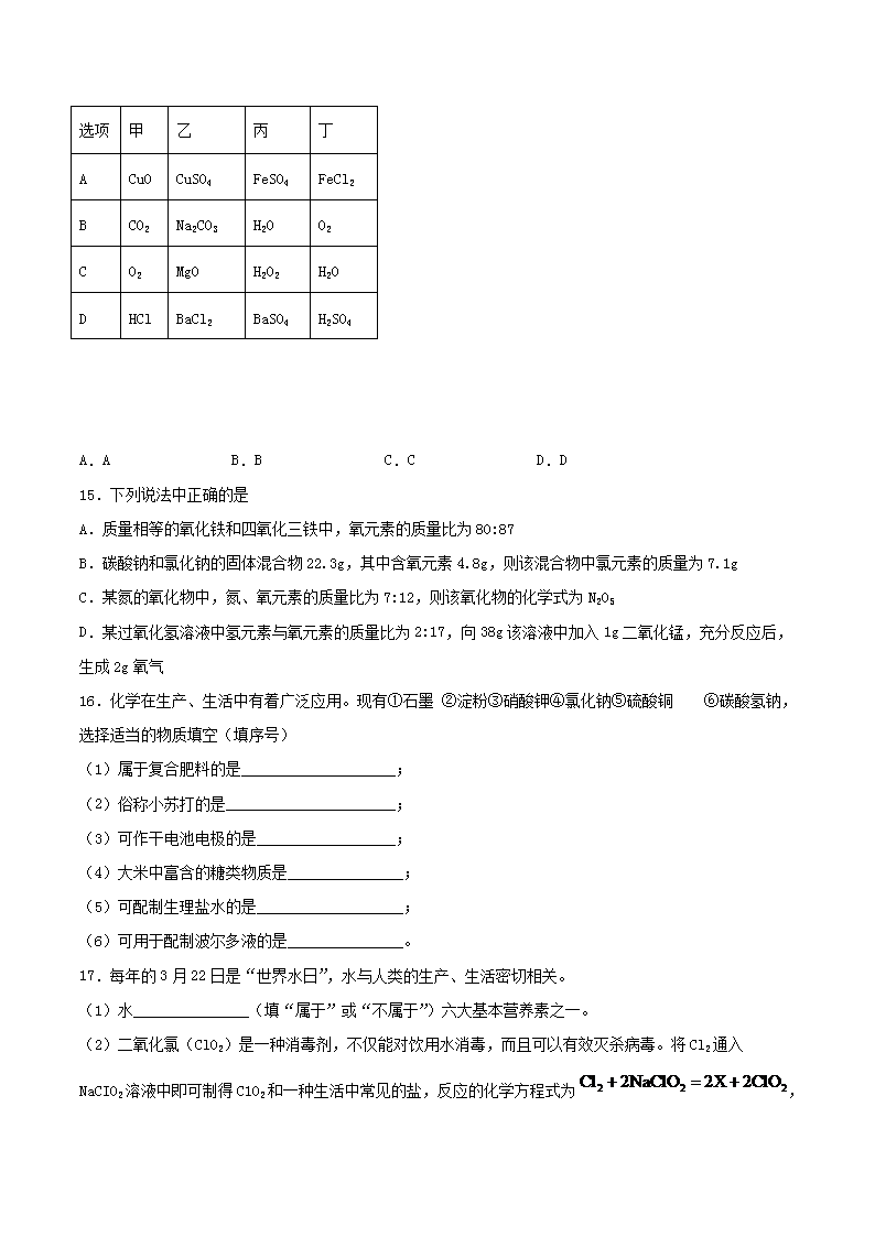 【文档名称】 2020年天津市中考化学真题及答案(Word版).doc