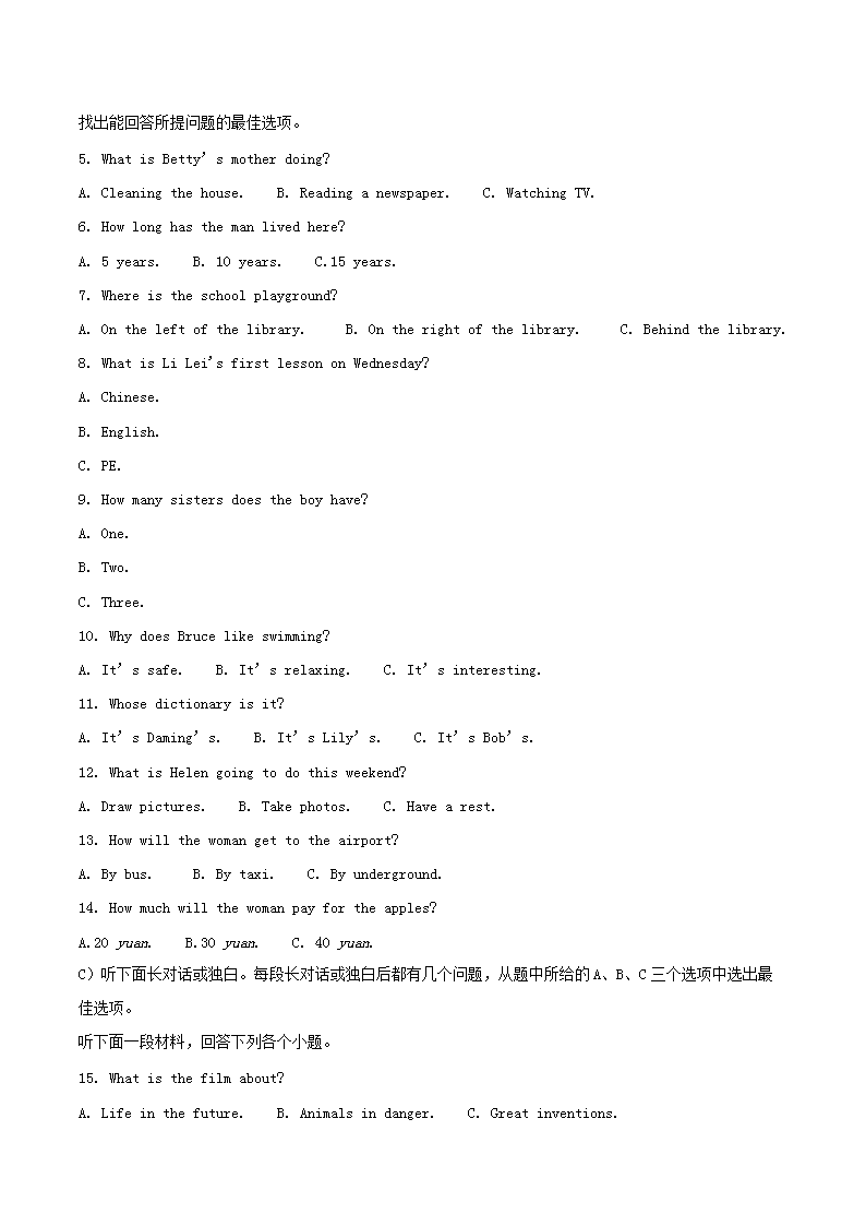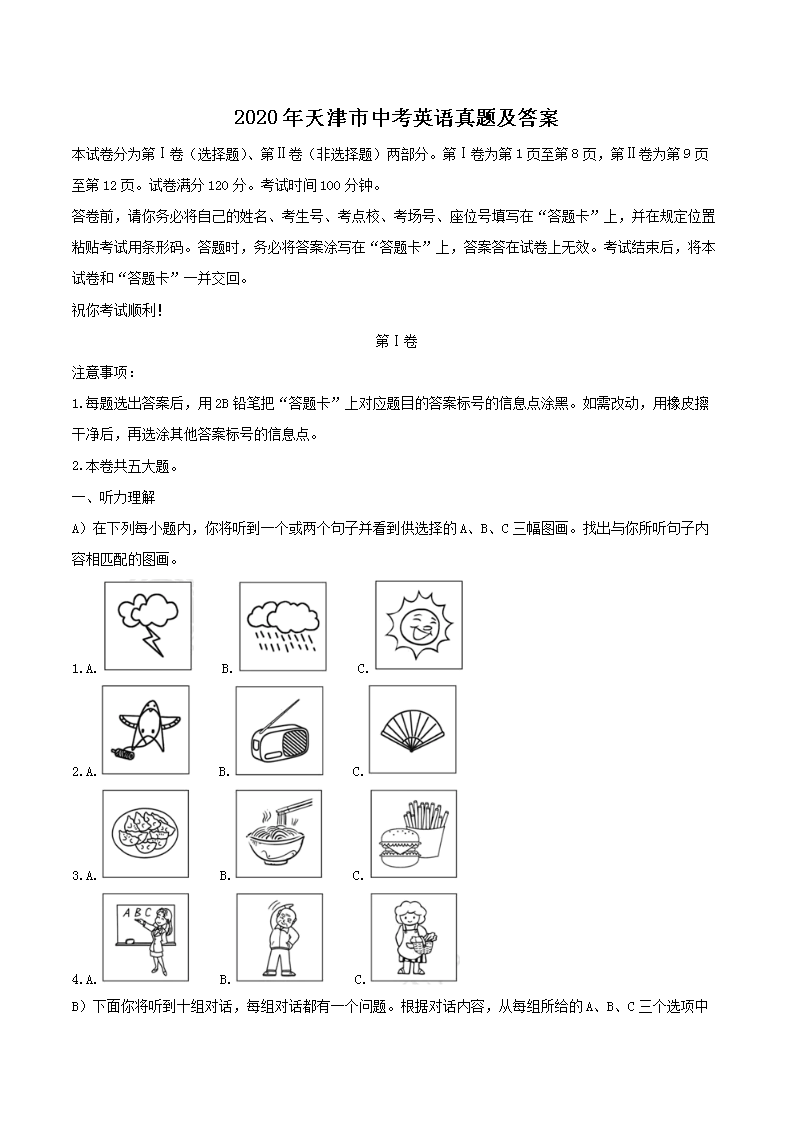 【文档名称】 2020年天津市中考英语真题及答案(Word版).doc