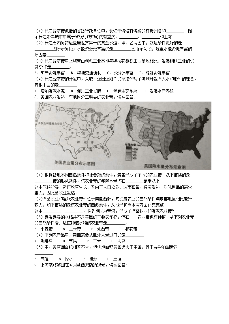 【文档名称】 2016年上海杨浦中考地理真题及答案(Word版).doc
