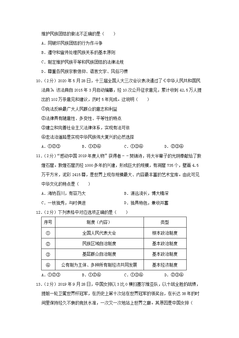 【文档名称】 2020年贵州遵义市中考道德与法治真题及答案(Word版).doc
