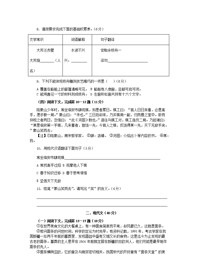【文档名称】 2015年上海宝山中考语文真题及答案(Word版).doc