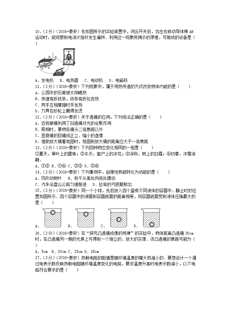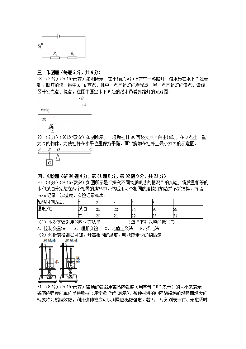 【文档预览】 无忧考网整理发布2016山东省泰安市中考物理真题及答案(Word版),前五页预览如下: