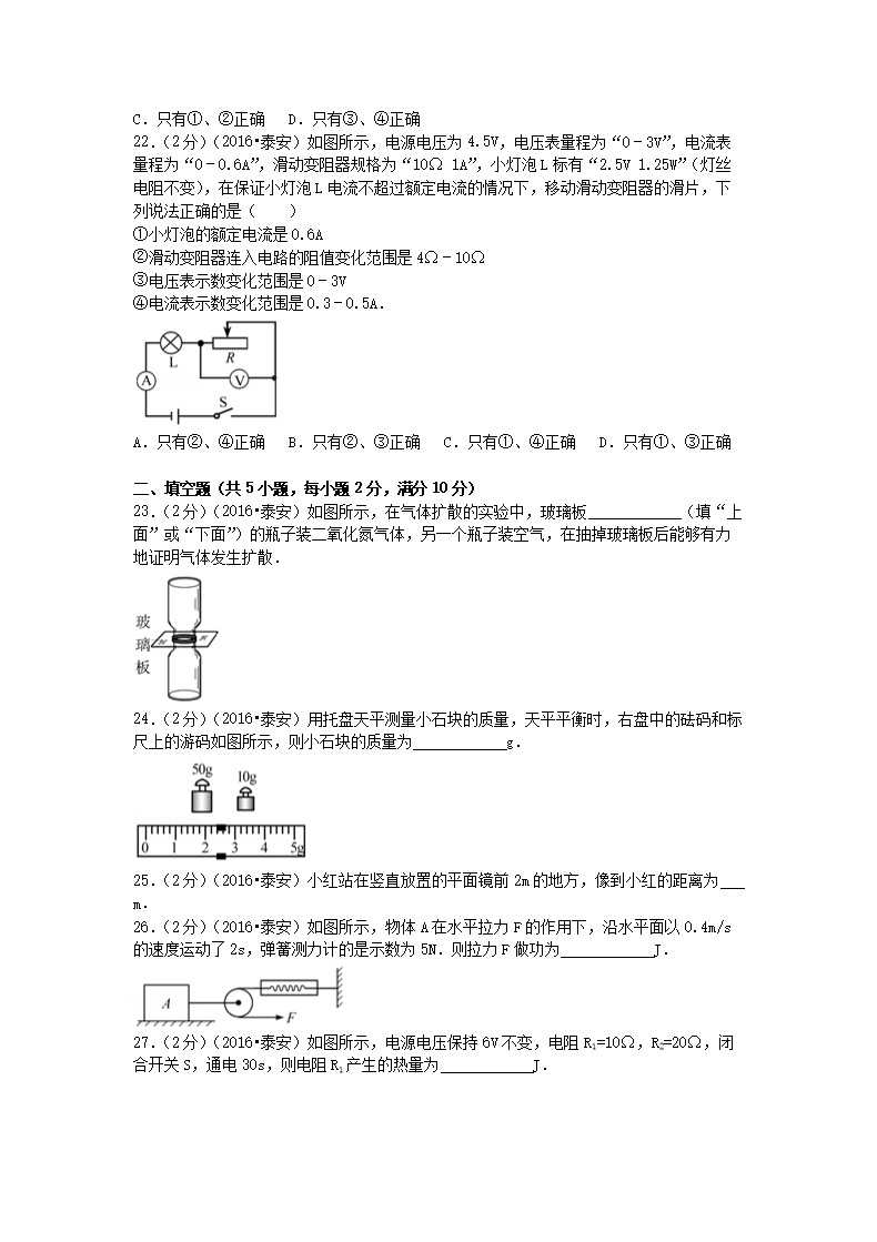 【文档名称】 2016山东省泰安市中考物理真题及答案(Word版).doc