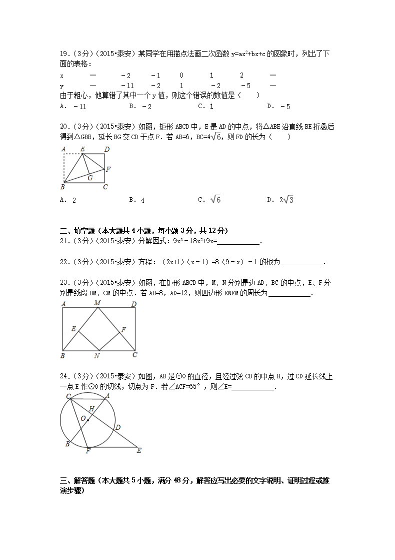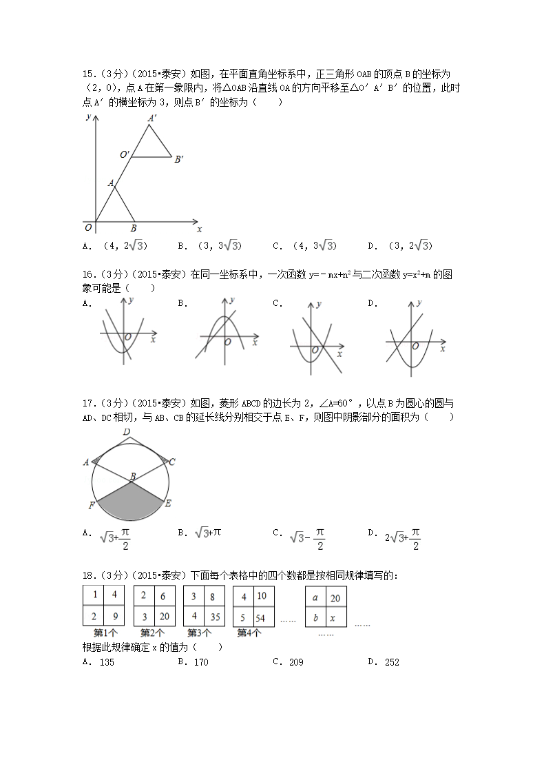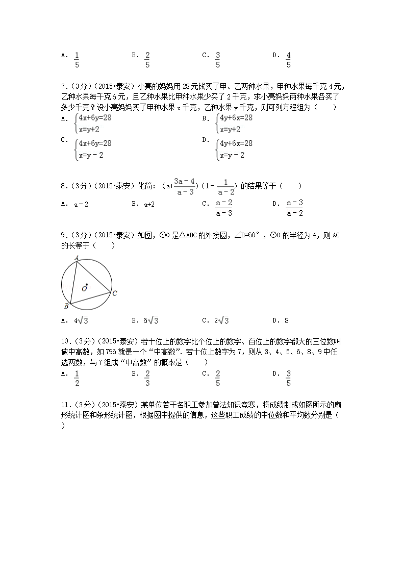 【文档名称】 2015山东省泰安市中考数学真题及答案(Word版).doc