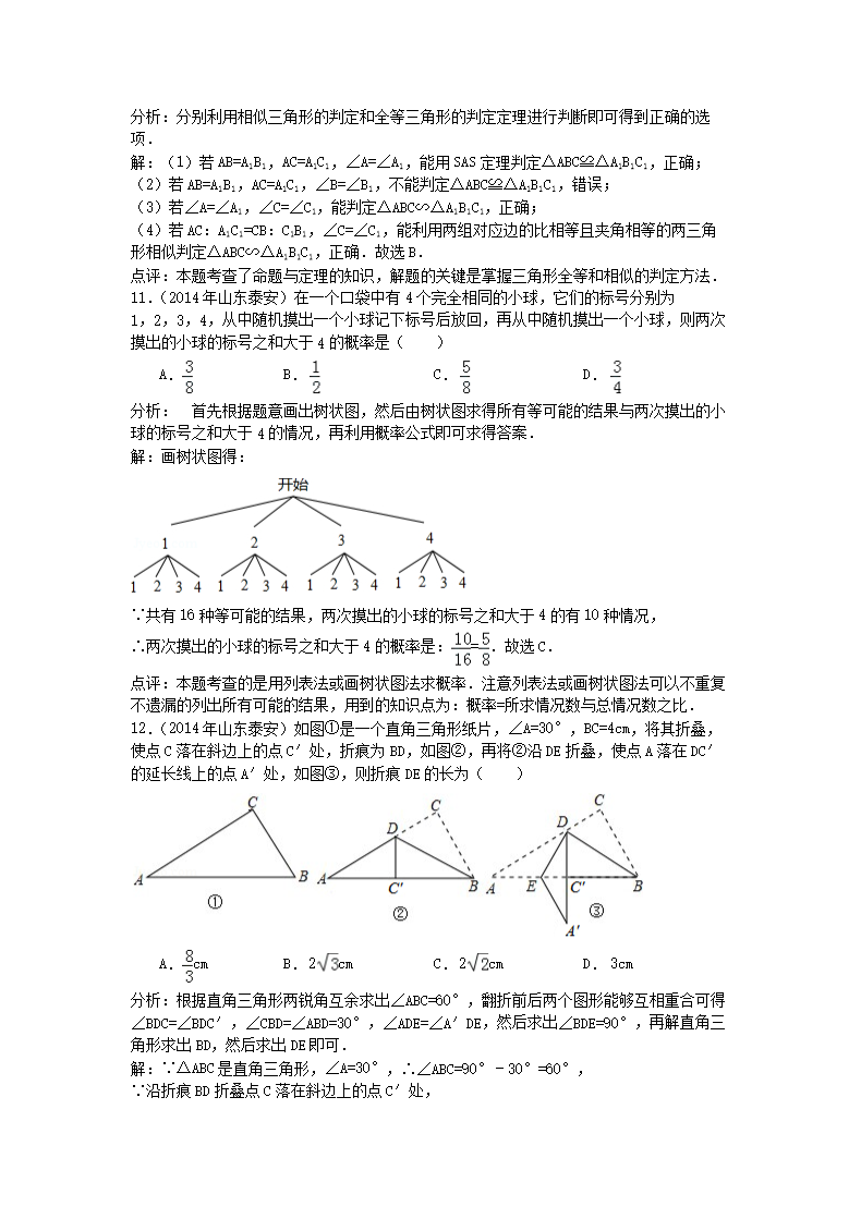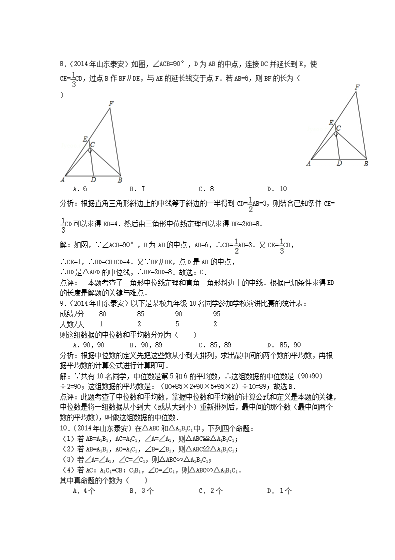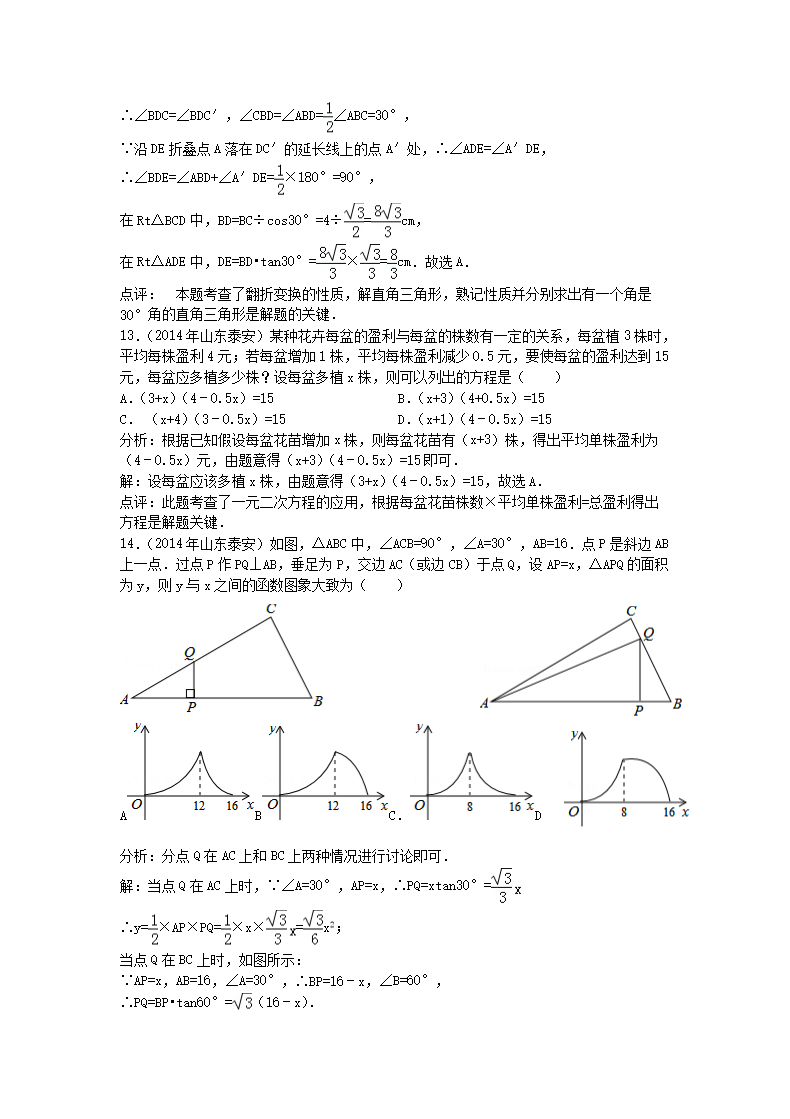 【文档名称】 2014山东省泰安市中考数学真题及答案(Word版).doc