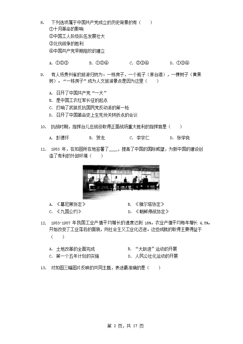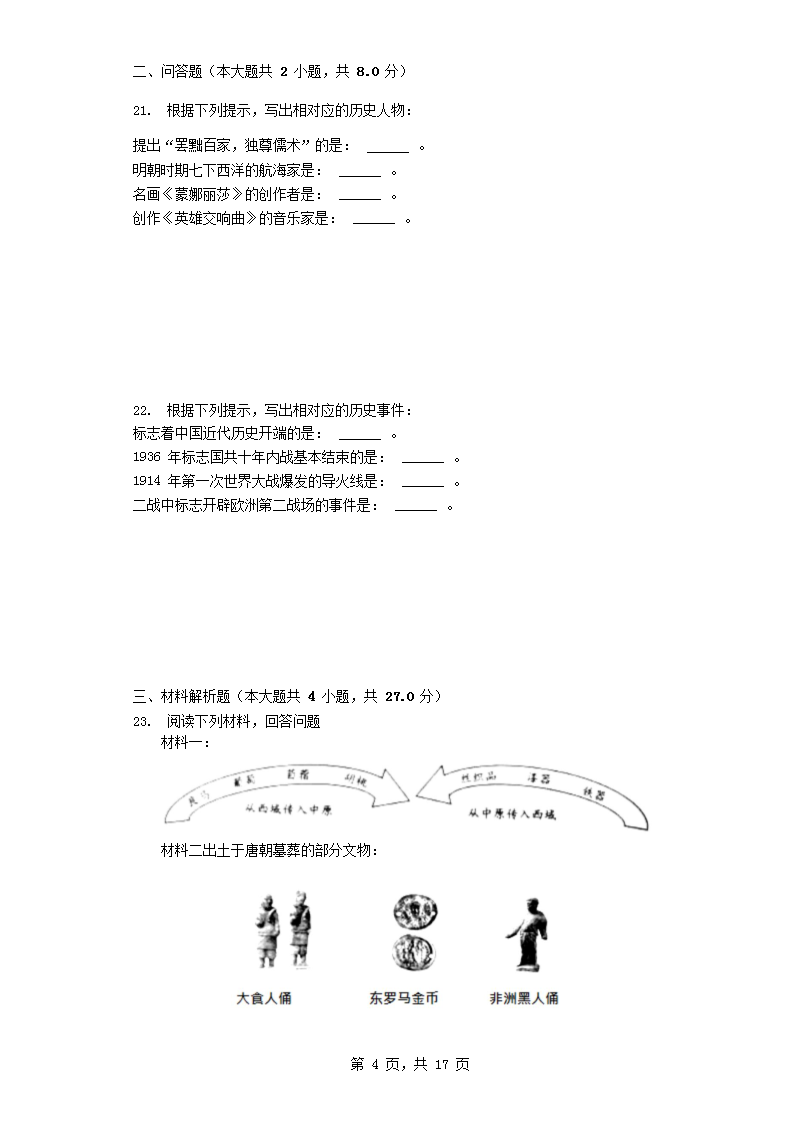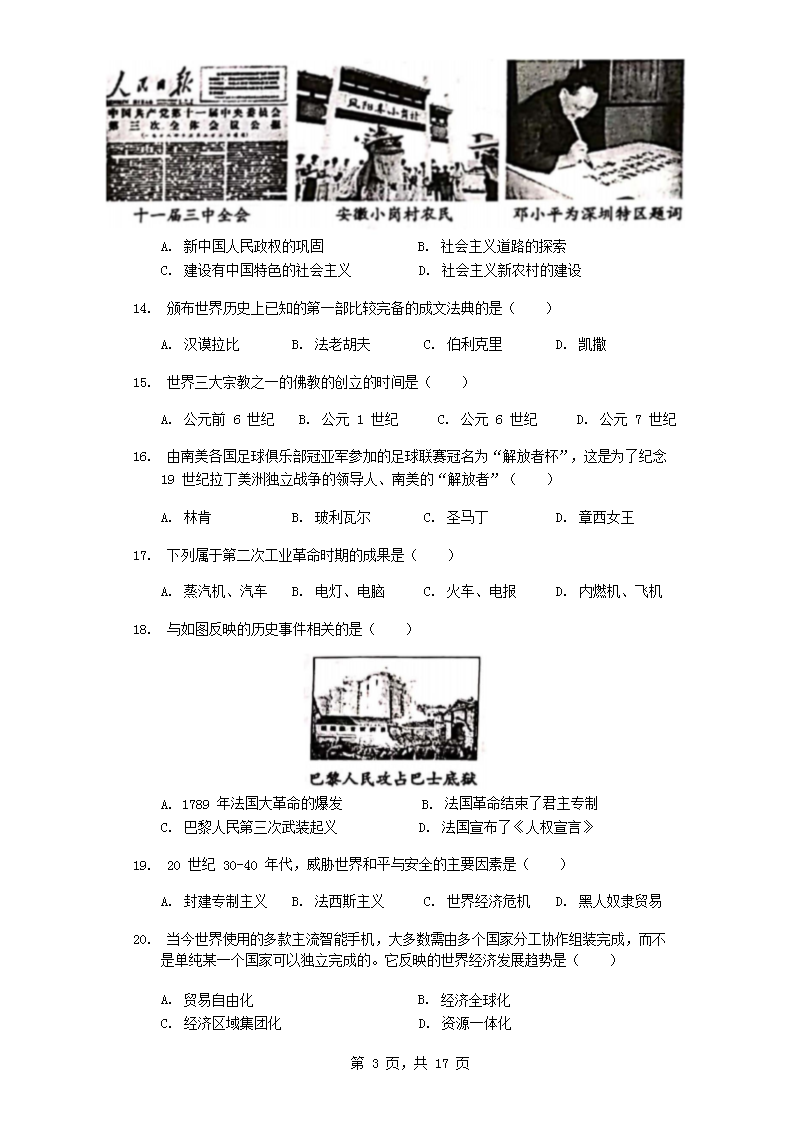【文档名称】 2019年贵州黔西南州中考历史真题及答案(Word版).doc