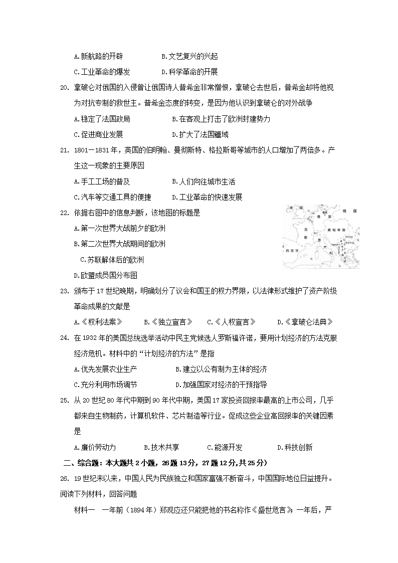 【文档名称】 2017年广东省茂名市中考历史真题及答案(Word版).doc