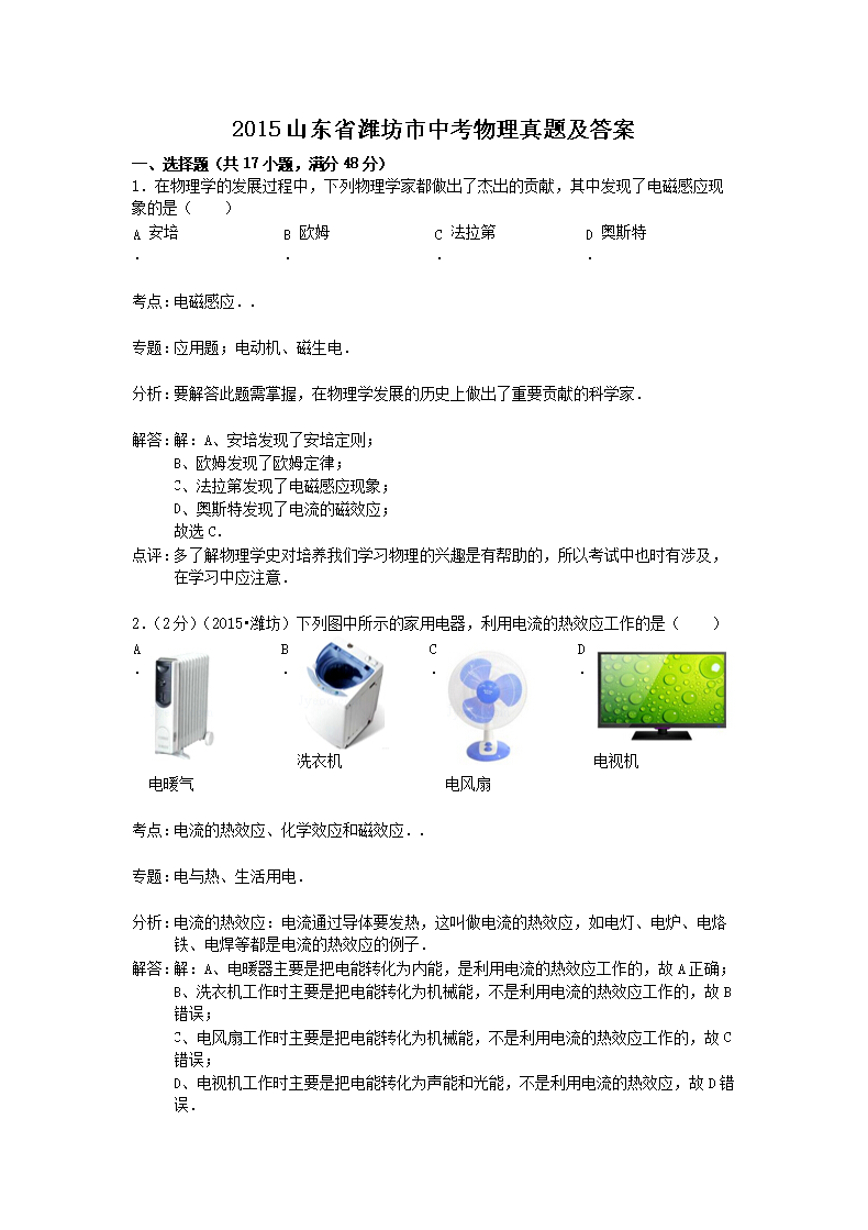 【文档预览】 无忧考网整理发布2015山东省潍坊市中考物理真题及答案(Word版),前五页预览如下: