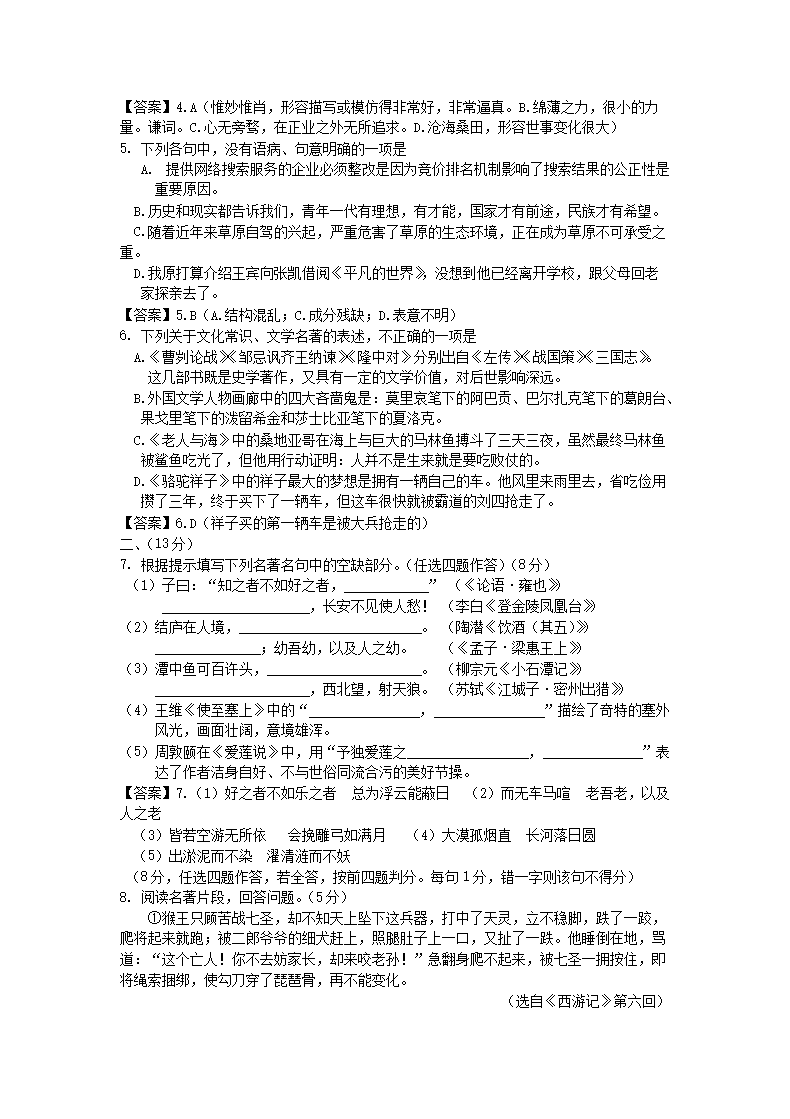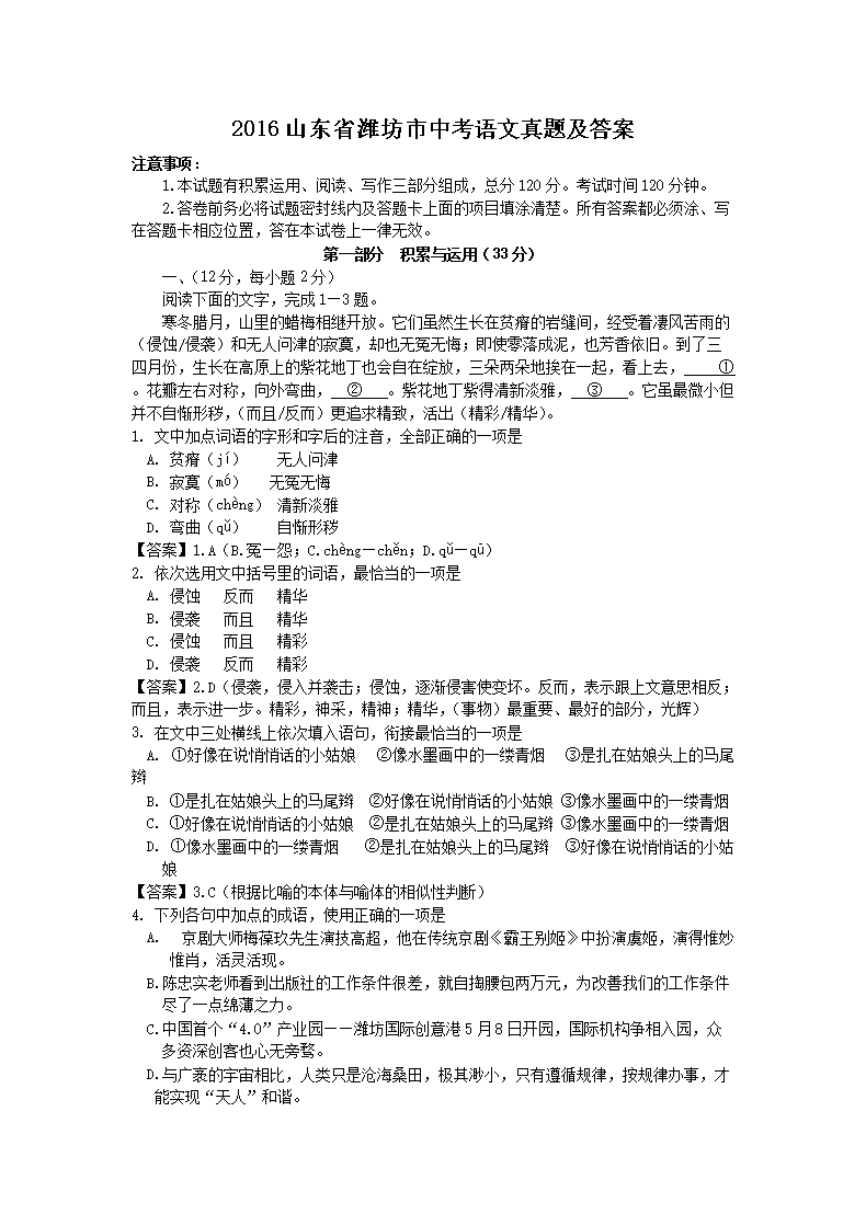 【文档名称】 2016山东省潍坊市中考语文真题及答案(Word版).doc