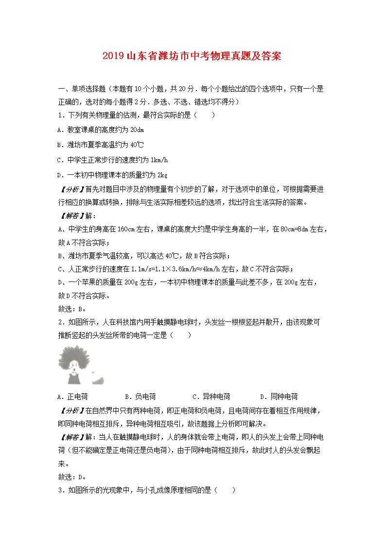 【文档预览】 无忧考网整理发布2019山东省潍坊市中考物理真题及答案(Word版),前五页预览如下: