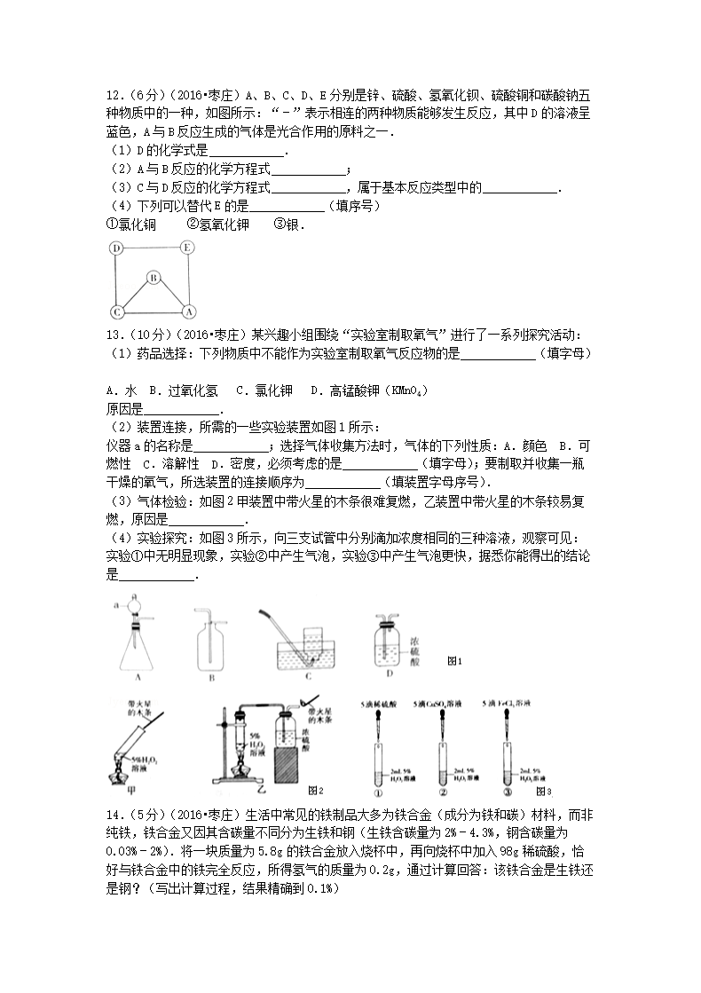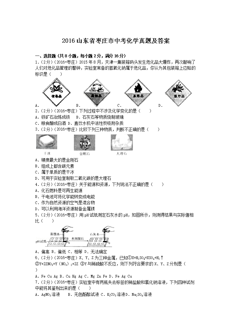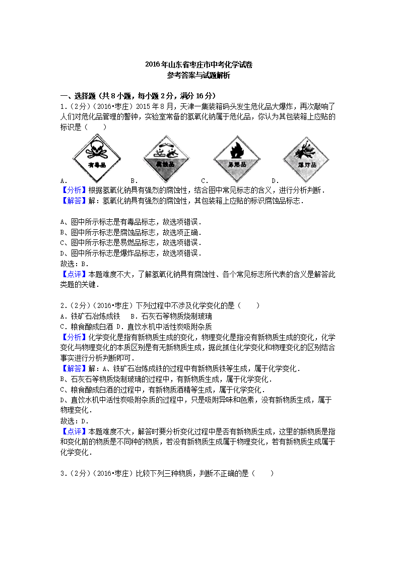 【文档预览】 无忧考网整理发布2016山东省枣庄市中考化学真题及答案(Word版),前五页预览如下: