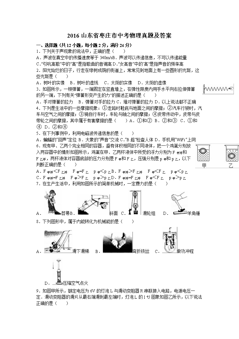 【文档名称】 2016山东省枣庄市中考物理真题及答案(Word版).doc