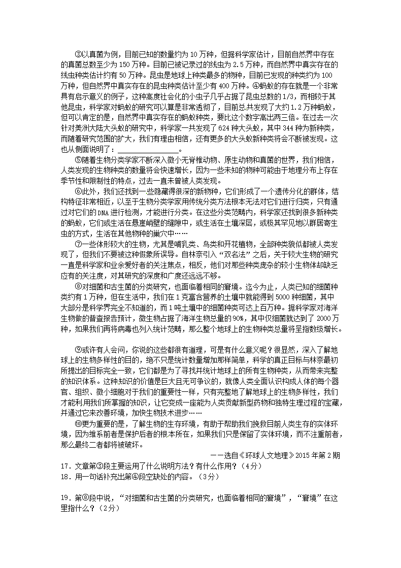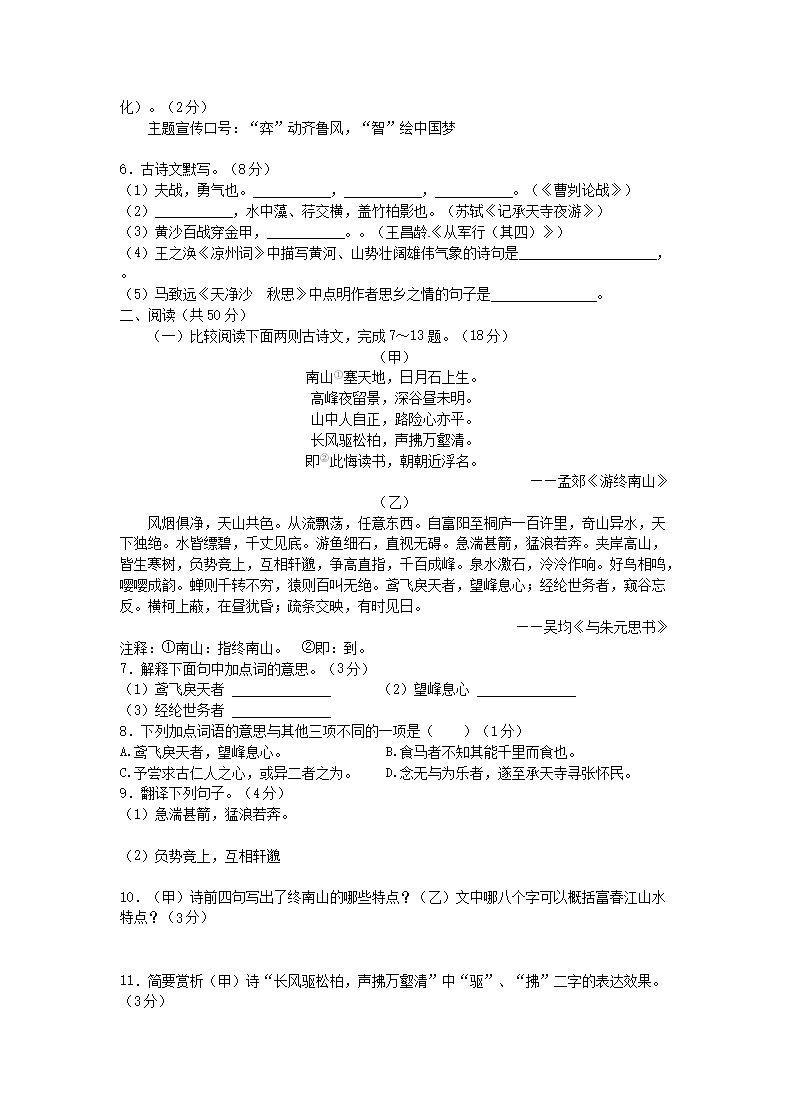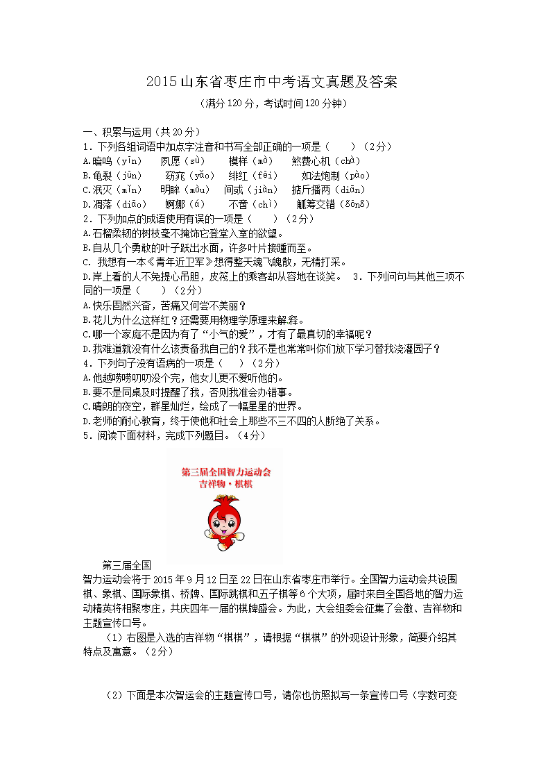 【文档名称】 2015山东省枣庄市中考语文真题及答案(Word版).doc