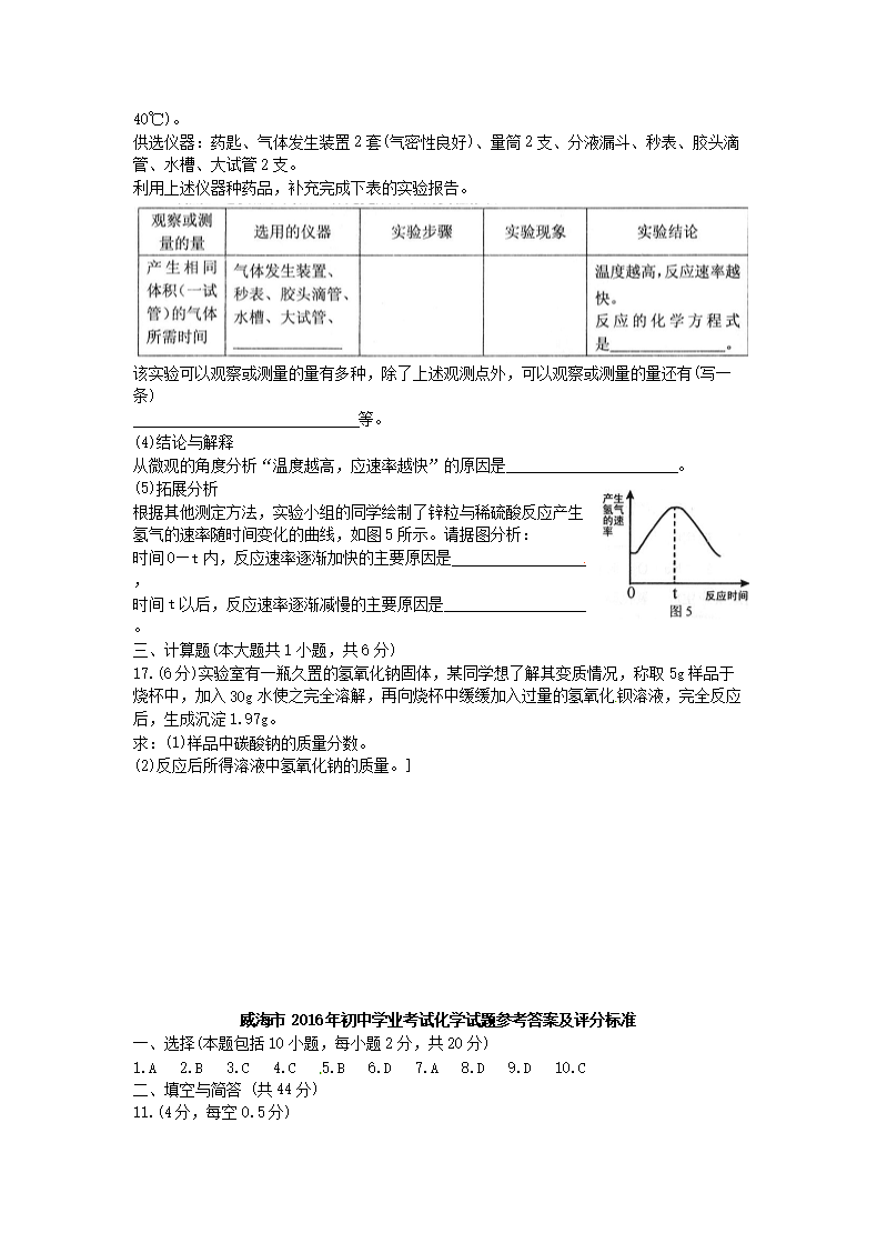 【文档名称】 2016山东省威海市中考化学真题及答案(Word版).doc