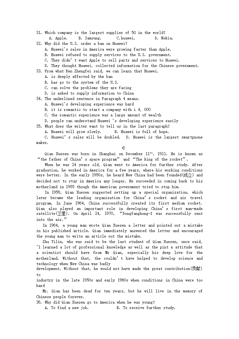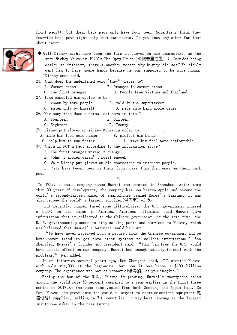 【文档预览】 无忧考网整理发布2019山东省烟台市中考英语真题及答案(Word版),前五页预览如下: