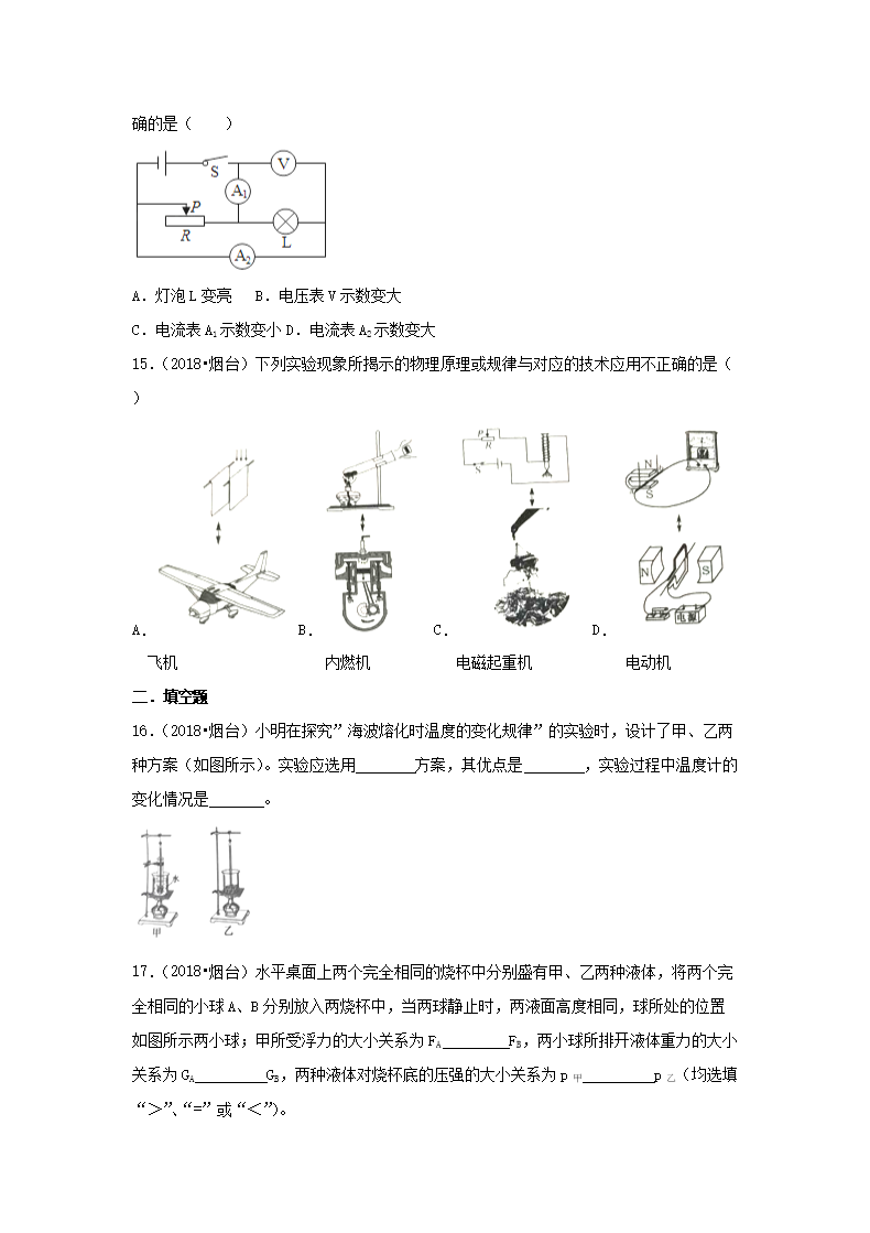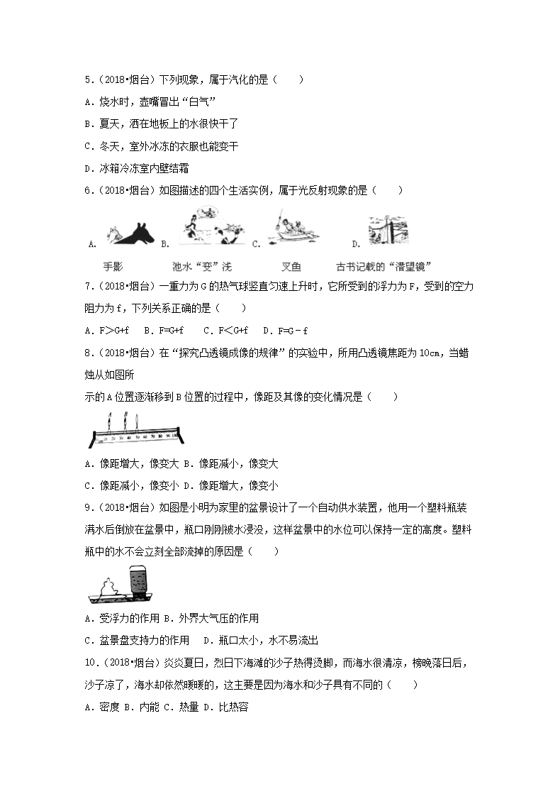 【文档名称】 2018山东省烟台市中考物理真题及答案(Word版).doc