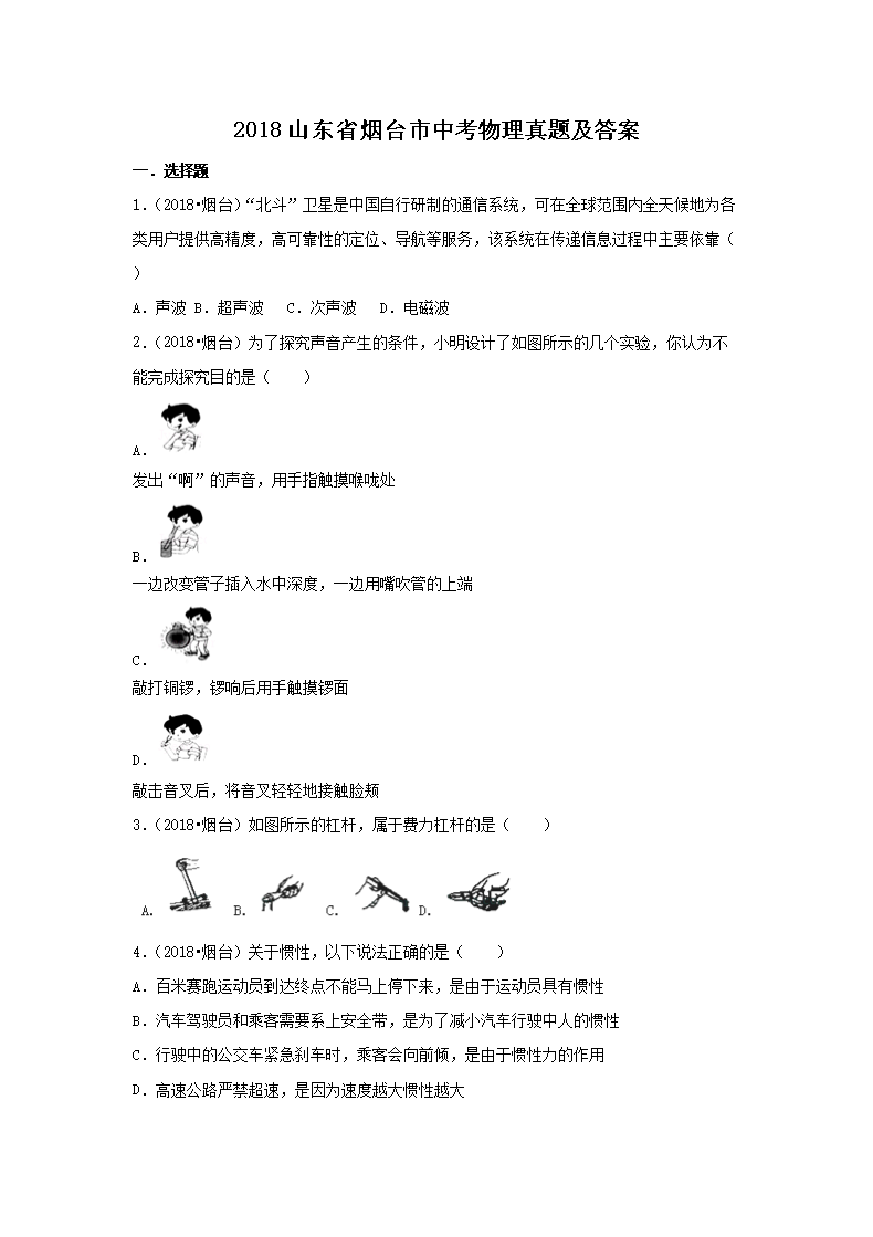 【文档预览】 无忧考网整理发布2018山东省烟台市中考物理真题及答案(Word版),前五页预览如下: