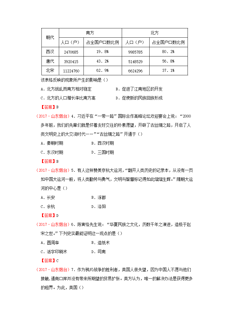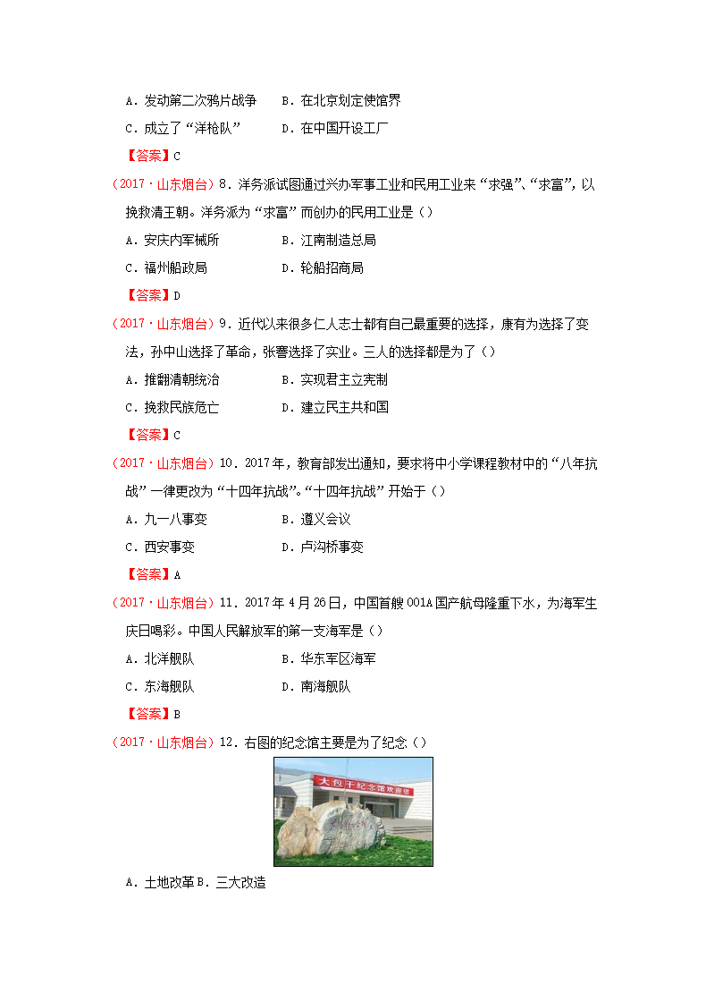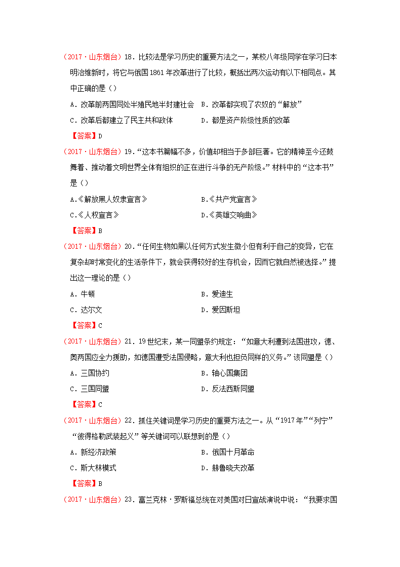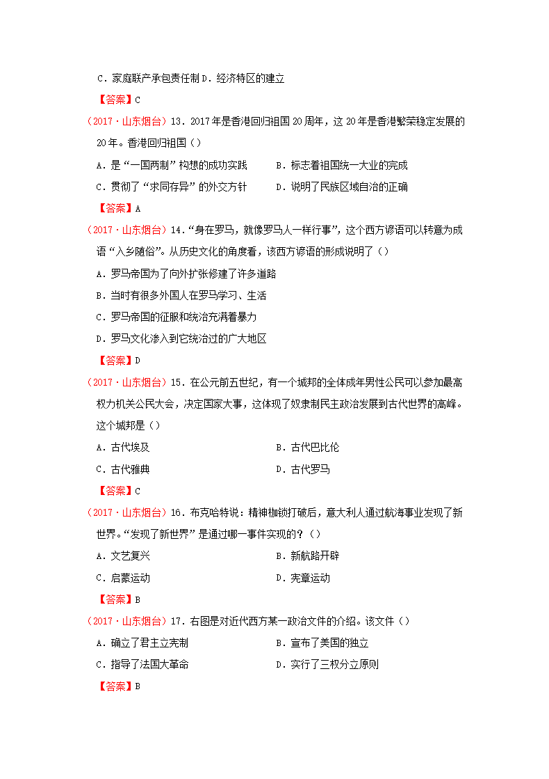 【文档名称】 2017山东省烟台市中考历史真题及答案(Word版).doc