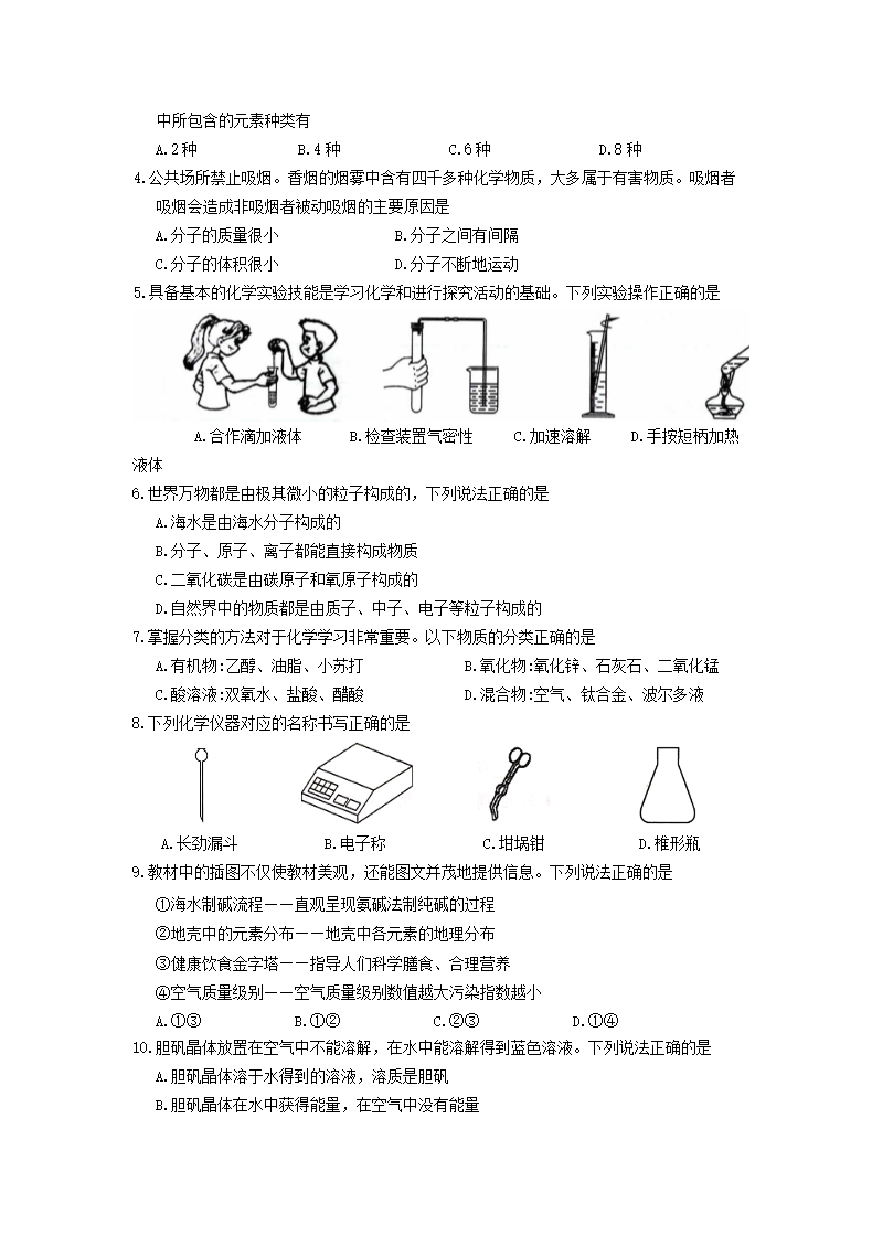 【文档名称】 2019山东省淄博市中考化学真题及答案(Word版).doc