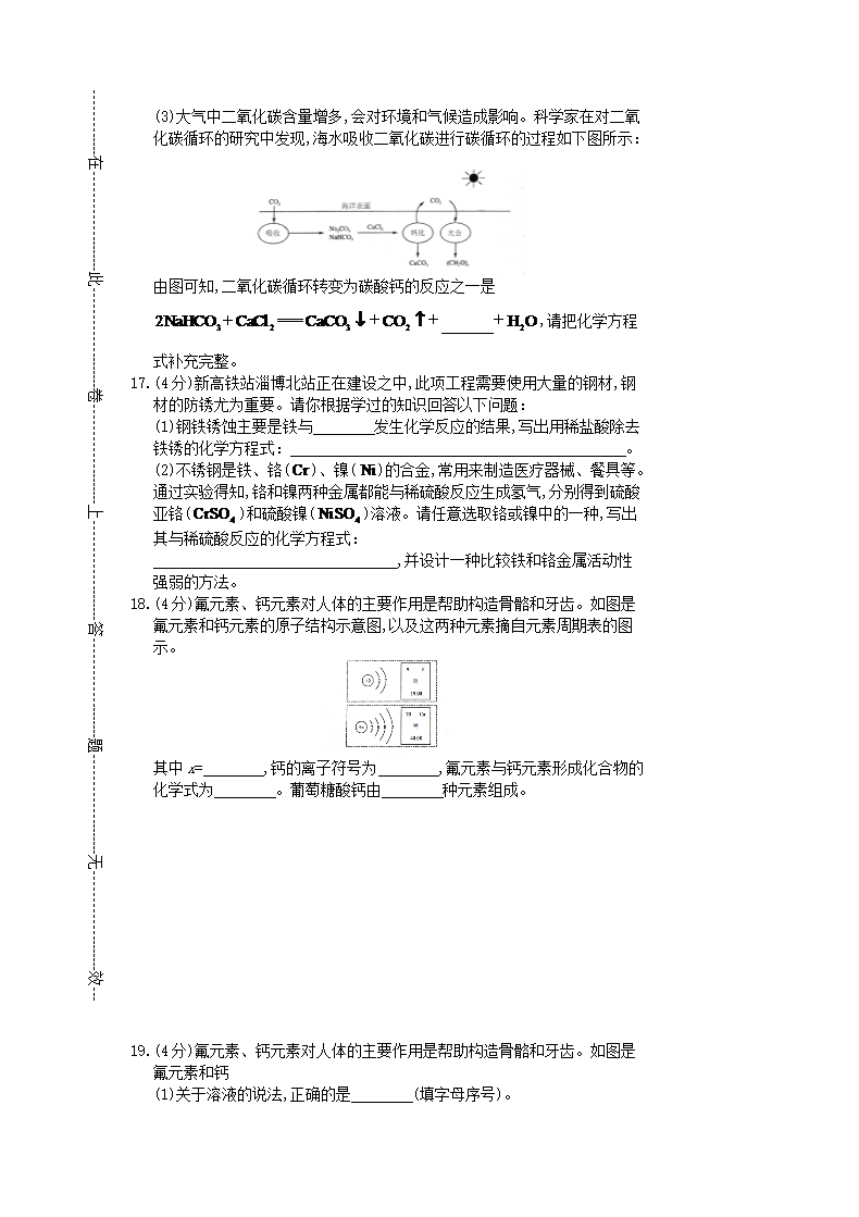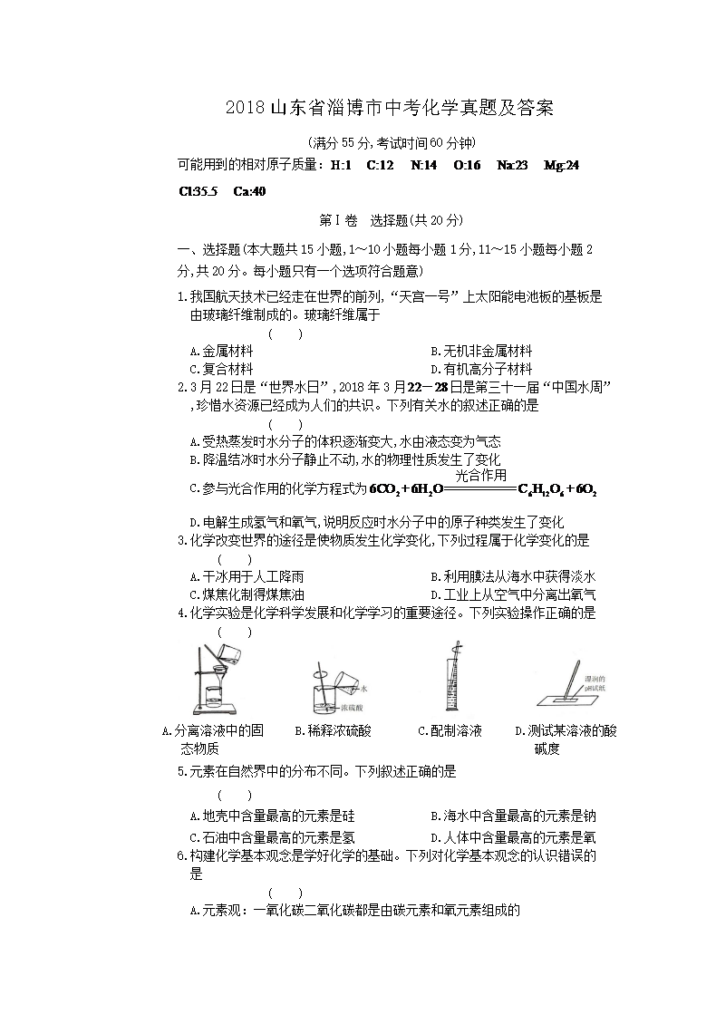 【文档名称】 2018山东省淄博市中考化学真题及答案(Word版).doc