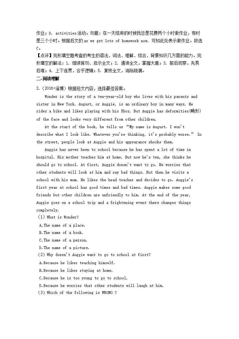 【文档预览】 无忧考网整理发布2016山东省淄博市中考英语真题及答案(Word版),前五页预览如下:
