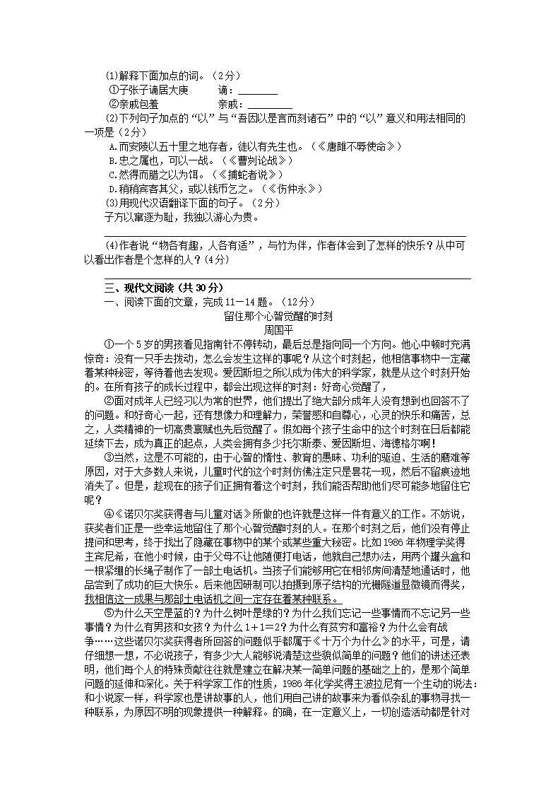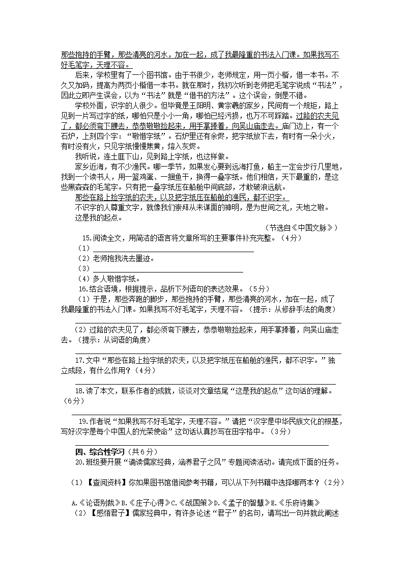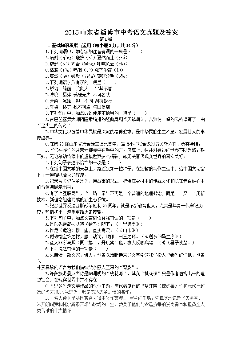 【文档名称】 2015山东省淄博市中考语文真题及答案(Word版).doc